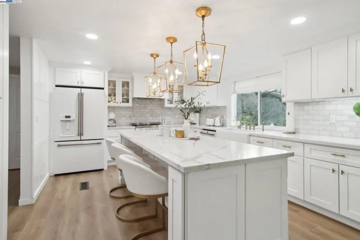 Situated on an expansive lot atop one of Danville’s most coveted hillsides, this exceptional EAST-FACING home offers a rare blend of exclusivity, privacy, & panoramic views — all while being just minutes from the vibrant charm of downtown Danville. From the moment you arrive you’re greeted by a peaceful setting that feels worlds away, yet still a short stroll to boutique shops, acclaimed restaurants, scenic trails & the lively Saturday farmers market. It’s the best of both worlds — tranquil seclusion with easy access to everything that makes Danville one of the East Bay’s most desirable communities. Inside, the home showcases modern upgrades & timeless charm. The thoughtfully designed kitchen features quartz countertops & marble tile backsplash, while spa-inspired bathrooms elevate your daily routine. At the heart of the home, a light-filled open-concept kitchen and family room invite connection & comfort. The spacious dining area is ideal for entertaining & French doors seamlessly link the living & family rooms to create effortless indoor-outdoor flow. The backyard patio is a true retreat surrounded by mature trees, dramatic hillside views & golden hour sunsets. This home delivers the ultimate trifecta: elevated views, exclusive privacy, and unbeatable convenience.