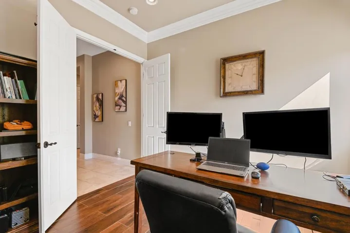 Stunning Executive Home in Desert River Estates! Located in one of Indio’s most sought-after gated communities, this exceptional residence blends modern luxury, high-end upgrades, and everyday comfort–just minutes from the Empire Polo Grounds, home to Coachella and Stagecoach. A gated front courtyard and lush, manicured landscaping create an inviting first impression. Double entry doors open to a spacious interior filled with natural light and elegant details, including crown molding, recessed lighting, tile flooring, and a soothing neutral palette. The open floor plan flows effortlessly between living, dining, and kitchen areas, perfect for entertaining or relaxing with family. The living room features large picture windows framing views of the backyard paradise, while the chef’s kitchen offers rich wood cabinetry, granite counters and backsplash, a large center island with breakfast bar seating, and stainless steel appliances. The adjacent formal dining room is ideal for hosting dinners and special gatherings. All bedrooms are generously sized with beautiful wood flooring. The primary suite is a luxurious retreat featuring a private ensuite bath with dual vanities, soaking tub, oversized walk-in shower with bench seating, and a large walk-in closet. A private slider opens directly to the backyard for tranquil morning coffee or late-night dips in the spa. Two additional guest suites provide privacy and comfort for family or visitors. Step outside to your resort-style backyard oasis–a stunning escape designed for both relaxation and entertainment. Enjoy the sparkling pool and spa, tropical landscaping, and a spacious covered patio with ceiling fans and a built-in BBQ bar for alfresco dining. Two large grassy side yards offer space for play, pets, or future projects, while two powered storage sheds–each equipped with mini-split A/C units–provide versatile workspace or climate-controlled storage. The attached 3-car garage offers ample room for vehicles, a golf cart, and desert toys. Ideally situated near world-class golf courses, shopping, dining, and the vibrant Polo Grounds, this home is perfect as a primary residence, vacation retreat, or lucrative seasonal rental. Come experience the best of desert living in Desert River Estates–where luxury, lifestyle, and location unite to create the perfect backdrop for a lifetime of memories.