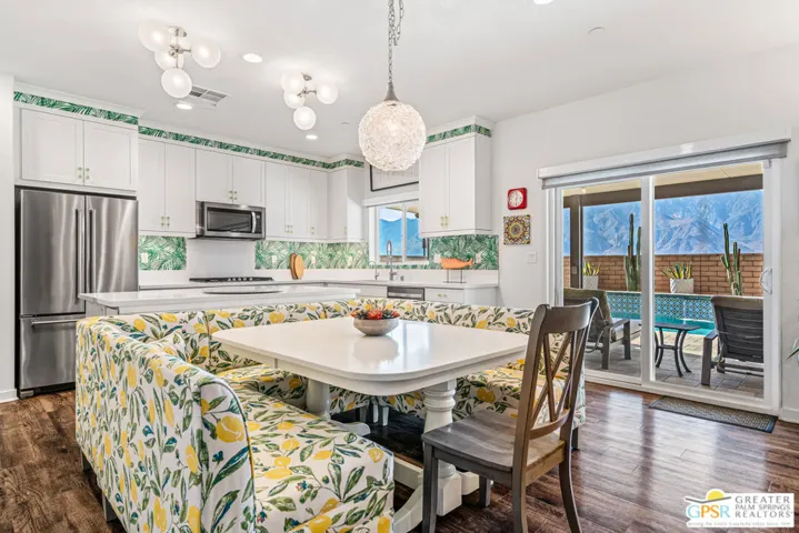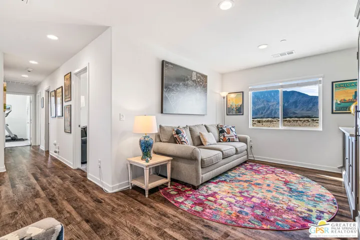 Welcome to this exceptional Bella Sol model in Verano, offering 6 bedrooms, 4 baths and over 3,100 square feet of thoughtfully designed living space. This move-in ready home offers unobstructed 180-degree mountain views and an impressive blend of luxury, comfort, and modern technology. Step inside to discover a gourmet kitchen designed for both style and function, complete with Whirlpool stainless steel appliances, quartz countertops, and a spacious center island perfect for entertaining. Luxury vinyl plank flooring flows throughout the open-concept living areas, with plush carpeting in the bedrooms for added comfort. The attached guest suite features its own private entrance, kitchenette, laundry, living room, and full bathroom – ideal for guests, extended family, or a private office or studio. Enjoy the convenience of smart home technology, including a SkyBell video doorbell, Kwikset smart locks, and Aqualink pool app. A Puragain-owned water filtration system provides clean, high-quality water throughout, while the Patriot whole-house air purification system ensures fresher, healthier indoor air. A solar power system helps significantly reduce electric bills for energy-efficient living. The backyard oasis, custom-designed by Teserra Outdoor, showcases a sparkling pool and spa with color-changing lights surrounded by desert landscaping and plenty of space for outdoor relaxation. The garage features epoxy flooring, LiftMaster WiFi-enabled garage door and is pre-wired for an electric car charger. Residents of Verano enjoy an array of resort-style amenities, including a clubhouse and fitness center, pool and spa, on-site management, and beautiful park with water features. Don’t miss the opportunity to own this beautifully upgraded, move-in ready home where modern living meets breathtaking desert views.