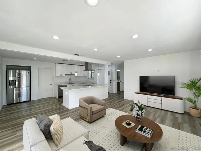 Beautiful 3B/2BA Single-Story Home in Kearny Mesa! This home is the dream location for any food lover. It is a block from Convoy St with some of the best food San Diego has to offer, all within walking distance. The home itself matches the great location. With an attached 2-car garage, ample driveway parking for multiple vehicles, street parking & large fenced in backyard this home has a lot to offer. Additional gated and concrete RV parking area to the side of the home. There is luxury vinyl plank throughout the entire home with upgraded features throughout. The kitchen features stone countertops, subway tile backsplash, updated cabinetry with soft-close doors, stainless steel appliances, and a large kitchen island that overlooks the living room, dining area, and backyard – perfect for entertaining. Upgraded dual pane vinyl windows & sliding glass door with Central AC & heat controlled by a Nest thermostat to keep the perfect temperature all year long. Tankless water heater, epoxy garage floor, & recessed lighting. Down the main hallway you have all three bedrooms including a master with on-suite bath. Both bathrooms have been updated and feature walk-in showers, glass sliding doors and waterfall shower heads. Back yard is fully fenced with grass area and large concrete patio. Samsung Refrigerator & Washer/Dryer included with sale. Centrally located with easy access to I805, 163, 52 and I15 freeways. Just down the street at the end of Othello Ave you can access the pedestrian and bicycle footbridge that crosses into Clairemont. Really a dream location!
