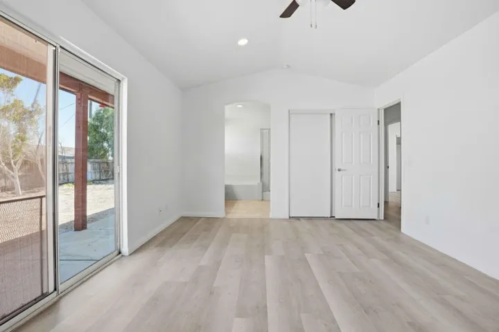 Introducing this beautifully renovated 3-bedroom, 2-bathroom home in the community of Salton City. Boasting 1,523 square feet of modern living space on an expansive 10,834 square foot lot, this property perfectly blends comfort, style, and functionality.Every corner of this home has been thoughtfully updated, offering a fresh and contemporary feel throughout. The open-concept layout provides a seamless flow between the living, dining, and kitchen areas — ideal for everyday living or entertaining guests.Enjoy the convenience of being within walking distance to the local high school, making it an excellent choice for families. The large lot offers ample space for outdoor activities, potential RV parking, or future landscaping projects.Whether you’re looking for a move-in ready primary residence or a peaceful desert retreat, this fully renovated home in Salton City is the perfect find.