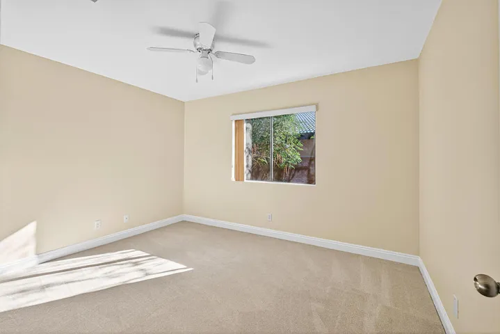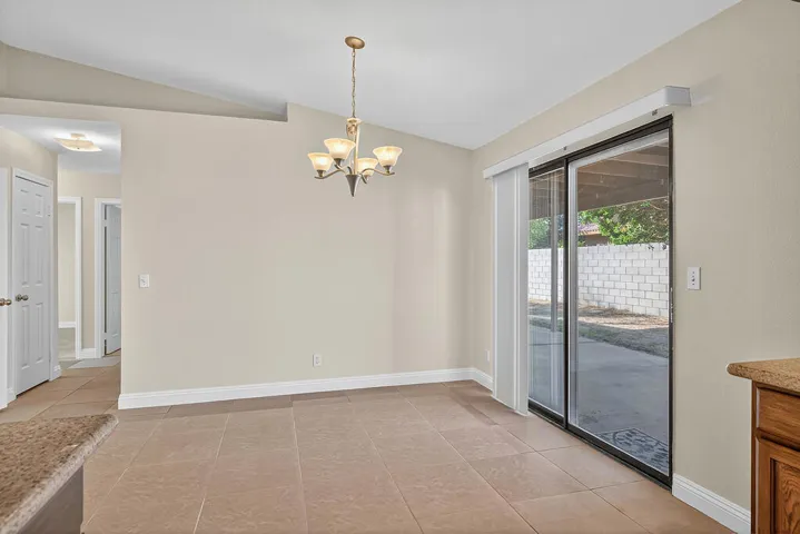 Come experience this bright, spacious, and newly updated 3-bedroom, 2-bath single-family home featuring vaulted ceilings and an open concept living area. With the perfect combination of comfort and convenience, this home has been recently renovated with fresh interior paint throughout. New carpet in the bedrooms and light floor tiles in the common areas add to a clean, modern feel. The kitchen features granite countertops with a functional layout and dining area, and large closets offer additional storage. The spacious primary bedroom includes a walk-in closet, ensuite bathroom, and direct access to the backyard, and two additional bedrooms provide flexibility for guests or a home office. Enjoy the newly planted grass in the front yard, and a large backyard with plenty of room for a pool, spa and ready for a new owner’s design. Fully paid solar panels provide energy efficiency and lower utility costs. Conveniently located near Panorama Park, multiple golf courses, dining, and shopping. Don’t miss this opportunity for affordable desert living!