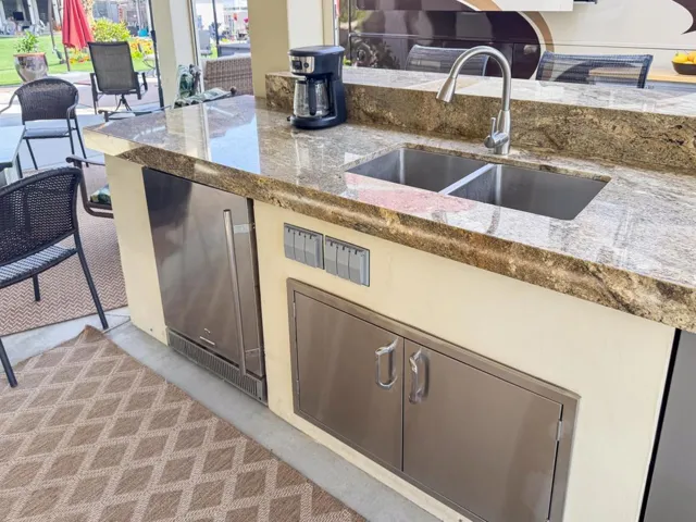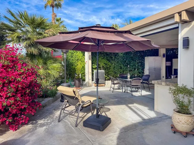 Outdoor Resort Indio is a Class A only RV resort.This oversized, 3,000 sq. ft. luxury RV lot is a private garden retreat with a prime east-facing rear of the lot, offering breathtaking sunrise views over the golf course and a serene park-like setting free from foot traffic. The beautifully landscaped gardens create a lush, tranquil environment with mature citrus tree, adding a refreshing touch. A large back porch extends your outdoor living space, offering a fountain view of the golf course, a perfect mix of sun and shade, and electric shades all around for privacy and comfort. From the street side, enjoy the sunset glow, making this lot an oasis for both relaxation and entertaining.The grand solid-roof pergola, featuring an insulated ceiling, three ceiling fans, and three heaters, ensures comfort at any time. The spacious outdoor kitchen, complete with granite countertops, stainless steel appliances, and an attached full-length kitchen bar, is ideal for hosting gatherings with a seamless flow of space for events. A built-in entertainment center with a TV, ample parking, and extra outdoor lighting add to the convenience and luxury of this exceptional lot. Partially furnished and assessment paid, this turn-key property is ready for you to experience premier RV resort living in style.