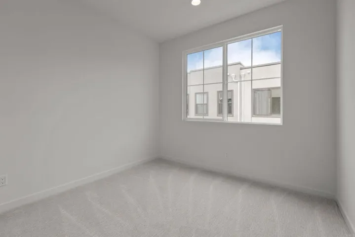 This stunning, three-story home showcases an open floor plan with 9-ft. ceilings and luxury vinyl plank flooring. Upstairs, the kitchen boasts Shaker-style cabinets, quartz countertops and Wolf® and Cove® stainless steel appliances. Enjoy the outdoors on the balcony. The third-floor primary suite features plush carpeting, two walk-in closets and a connecting bath that offers quartz countertop and a shower with custom tile surround. Additional highlights of this all-electric home include a solar energy system, LED lighting, electric charging station pre-wiring and smart thermostat.