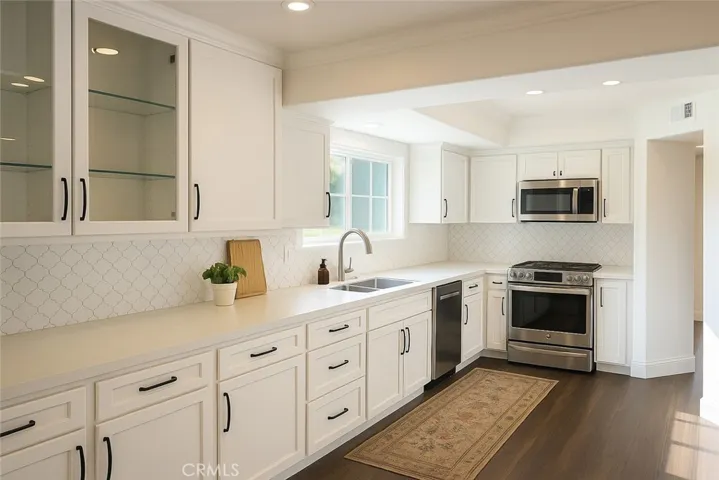 Welcome to this beautifully upgraded 3 bedroom + loft, 3 bathroom home offering 1,760 sq. ft. of comfortable and stylish living. Ideally situated on a private corner lot adjacent to a peaceful greenbelt, this home features a desirable main-floor bedroom and full bath. The remodeled kitchen shines with modern finishes, while the primary bedroom includes a luxuriously updated ensuite bathroom and walk in closet. Second upstairs bedroom also ensuite. Enjoy effortless indoor-outdoor living with a covered patio complete with flat screen TV and built-in BBQ, ideal for entertaining. The living room features warm natural light, a cozy gas fireplace, and wine fridge. The upstairs loft provides flexible space for an office or playroom. Individual laundry room, and direct access to 2 car garage. The Laurelwood community has 2 beautiful private swimming pools, spas, and amenities. Conveniently located to major Shopping centers, restaurants, and a park close by to the community. This home feels private, relaxing, and serene. Truly move-in ready and designed for comfort and enjoyment.