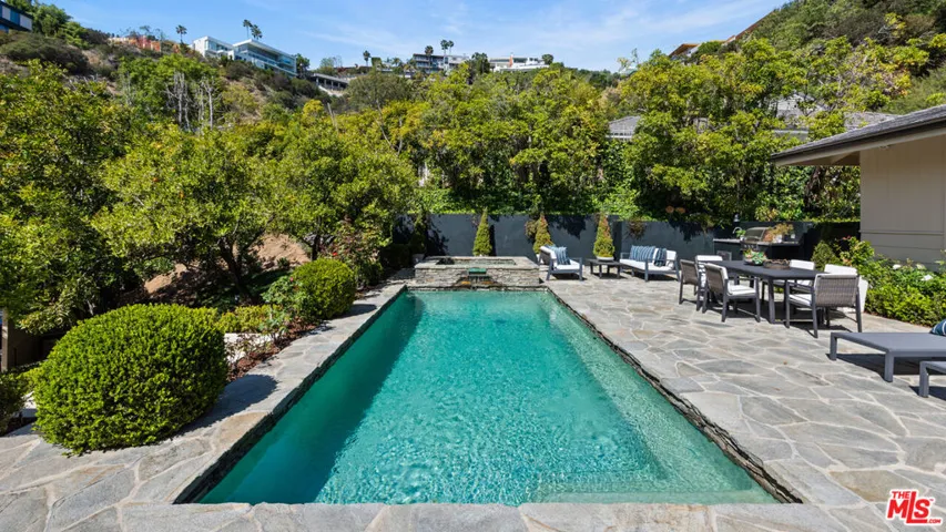 This gated and super private, just-remodeled, 3-bedroom timeless and classic Traditional home, WITH an attached 1-bedroom guesthouse, is located in one of the most coveted areas of Los Angeles, within the halo of the “Bird Streets”, yet outside the chaos of it. The numerous French doors and large windows bathe the impressive, open layout with natural light and provide a direct visual connection to the outdoor amenities and the great city lights view. Light hardwood floors cascade underfoot as high vaulted ceilings add both space and character across the main living areas. The avid cook will thrive in the Danish Modern inspired, open-concept kitchen complemented with pro-style stainless steel appliances, and a large island with a breakfast bar. Enjoy the sparkling pool, dine al fresco with guests on the expansive patio, and gather around the firepit or in the expansive living room. Can be delivered furnished or unfurnished.