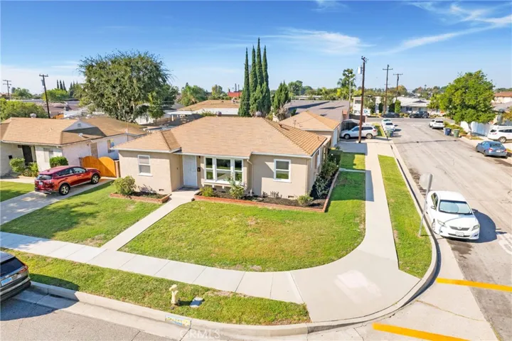 BEAUTIFULLY UPDATED 3-BEDROOM HOME ON A CORNER LOT WITH SPACIOUS YARD, NEW AC, AND DETACHED GARAGE PRIMED FOR ADU CONVERSION! Welcome to this charming and meticulously maintained single-story 3-bedroom, 1-bath home offering comfort, style, and modern functionality throughout. Situated on a desirable corner lot, this residence boasts new flooring, new paint inside and out, new dual-pane windows that provide abundant natural light and energy efficiency, and are guaranteed for life for lasting peace of mind. Step inside to a tastefully designed living room with recessed lighting and ceiling fan, flowing seamlessly into the dining area. Each room has been upgraded with hardwired internet and USB ports, ensuring your electronics are always powered and connected. All 3 bedrooms feature new carpet, fresh paint, and ample closet space with built-in storage, thoughtfully designed for convenience. The bathroom is beautifully updated with exquisite tile work, wood-grain porcelain flooring, a personalized niche, tub/shower combo, and wired for an exhaust fan for added comfort. The kitchen is a chef’s dream, featuring brand-new stainless steel appliances: gas stove, refrigerator, dishwasher, and over-the-range microwave. Designed to accommodate gas or electric stoves, it offers ample cabinet space, extended countertops, and a new garbage disposal. The detached 2-car garage, approx. 550SqFt, is primed to be converted to an ADU; featuring an attached bathroom with sink and toilet, a 60 AMP subpanel, fully upgraded laundry room, workshop with cabinet storage, separate access, and ample parking. The backyard is perfect for outdoor living, with a shaded patio, outdoor lights and outlets, motion-detection lighting for safety, gutters, and front/back irrigation with an easy-to-use timer. Built with premium materials and expert craftsmanship, this home includes a brand-new AC unit, new permitted 200 AMP electrical panel with upgraded wiring, high-end copper plumbing, and insulated walls. Conveniently located near a highly desirable high school, this residence offers an ideal setting for families, combining modern upgrades with timeless charm and thoughtful design throughout.