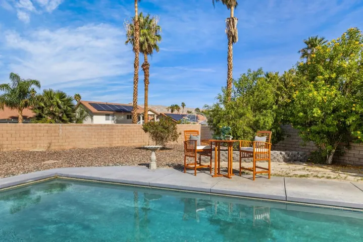 Proudly set on Cathedral City’s famous ”Candy Cane Lane,” this welcoming tri-level home offers over 2,200 sq. ft. of living space with 3 bedrooms, 2 bathrooms, and beautiful mountain views from all levels. The flexible layout includes multiple living areas, great for family gatherings, kids, or guests. Step outside to a spacious backyard made for everyday living, with a sparkling pool and spa ready for weekend barbecues and celebrations. A detached shed provides extra space for tools, storage of holiday decor, or hobbies. The owned solar system keeps utility costs low. Loved for its strong sense of community and festive holiday spirit, ”Candy Cane Lane” is one of Cathedral City’s most treasured neighborhoods. A wonderful opportunity for first-time buyers, an investor, or anyone looking for room to grow in a place that feels like home.