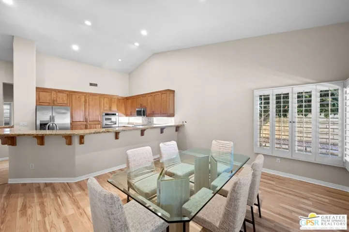 Luxury Desert Retreat in Exclusive White Sun Estates, a Rancho Mirage Gem! Discover refined desert living in this stunning 3-bedroom, 3-bath contemporary home in the highly sought-after gated community of White Sun Estates, a hidden treasure of just 52 homes in the heart of Rancho Mirage. Perfectly situated on an expansive 12,196 sq. ft. lot, this home offers privacy, sophistication, and resort-style comfort. Step inside to soaring 17ft ceilings and an open, light-filled floor plan ideal for relaxing or entertaining. The chef’s kitchen features sleek cabinetry, granite countertops, stainless steel appliances, a wet bar, and a large island with bar seating. The spacious great room with a cozy fireplace flows seamlessly to multiple dining areas and the backyard oasis. Two luxurious primary suites include en-suite baths and walk-in closets, with a third guest bedroom and full bath nearby. Custom shutters, manufactured wood flooring, and solar window screens add both style and efficiency. Enjoy breathtaking mountain views from your private backyard retreat with a sparkling pool and spa, low-maintenance concrete decking, and mature Mediterranean landscaping. Additional highlights include a two-car garage, separate laundry room, and energy-efficient upgrades throughout. With low HOA dues ($123/month) and a prime location near El Paseo, The River, McCallum Theatre, golf, and hiking, this home truly embodies the best of desert living. Homes in White Sun Estates rarely come on the market, don’t miss this exceptional opportunity!