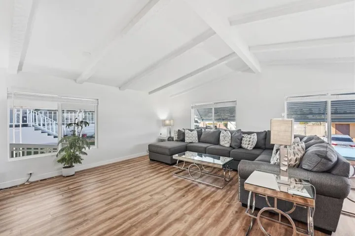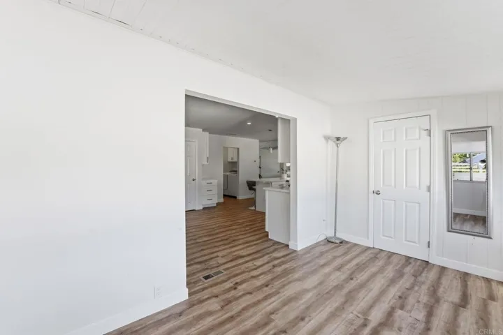 Exquisite and move-in ready! YOU OWN THE LAND ~ NO SPACE RENT~ Located in a desirable 55+ community, this beautifully updated 3-bedroom, 2-bath home showcases modern comfort and thoughtful design. The open layout features laminate flooring throughout, recessed lighting, and a bright skylight. The stunning kitchen boasts an oversized island with bar seating, quartz countertops, soft-close cabinets, farm-style sink, stainless steel appliances, and a new water heater. The primary suite offers dual sinks and a walk-in closet. Additional highlights include ~NEW A/C ~ 6-year-old roof, washer and dryer in the home, artificial turf landscaping, and a storage shed. The park also provides extra storage for your toys and vehicles, plus amenities such as a clubhouse, pool, guest parking, and laundry facilities. A perfect blend of elegance, functionality, and low-maintenance living!