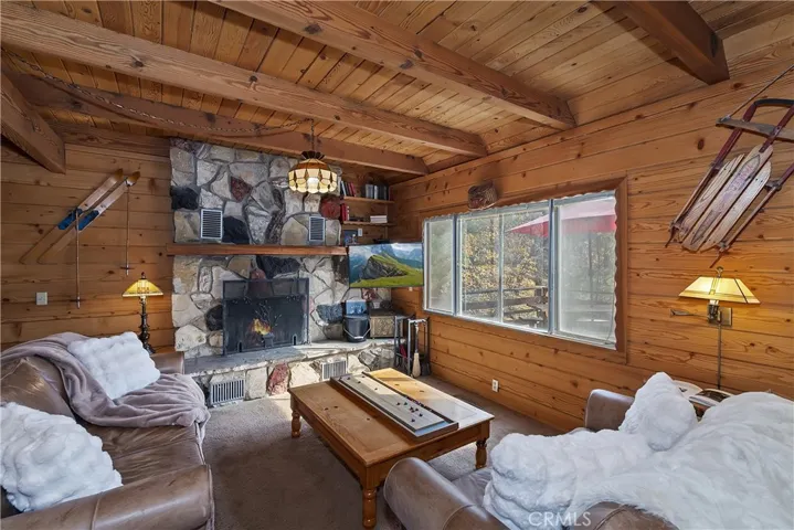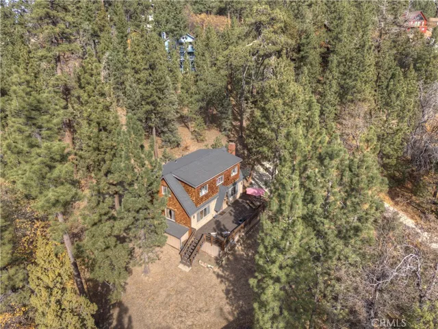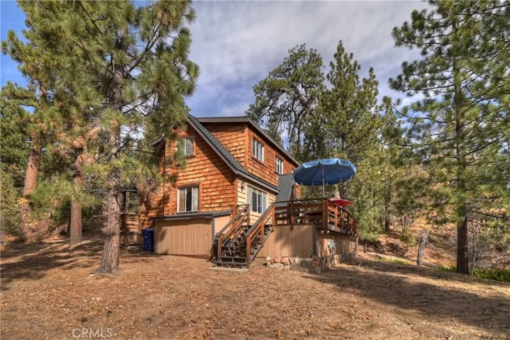 A timeless Big Bear mountain cabin surrounded by tall pines, this inviting 3-bedroom, 3-bath home captures the essence of mountain living. With approximately 1,320 sq. ft. of cozy interior space, the home features warm wood finishes and a beautiful natural stone fireplace that anchors the living area. Step outside to an expansive deck where you can unwind among the trees and enjoy peaceful forest surroundings with peek-a-boo views of the Bear Mountain ski slopes.