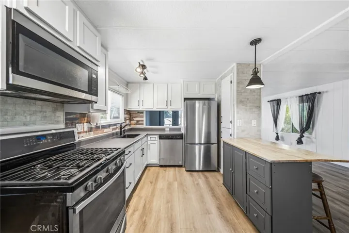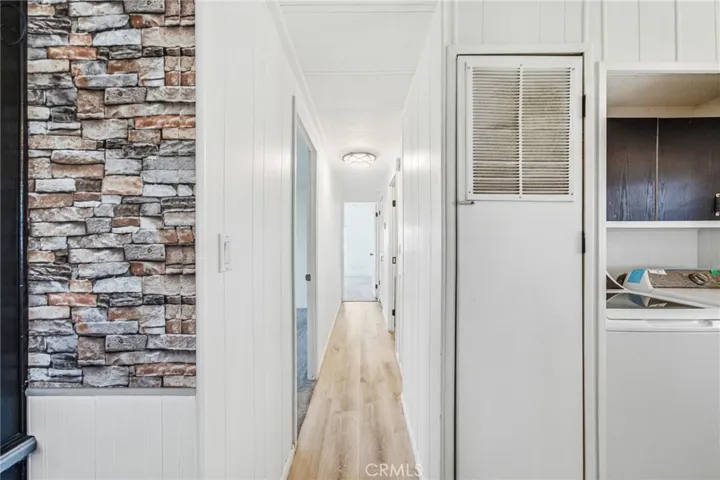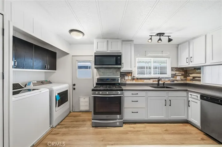 Thoughtful upgrades are found throughout, including brand-new waterproof vinyl plank flooring, upgraded light fixtures, four modern ceiling fans, and newly installed bathroom vanities that enhance the home’s clean and contemporary feel. Dual pane windows brighten the interior while improving energy efficiency. The kitchen opens into the main living area and includes a refrigerator, while the washer and dryer are also included for added convenience. A newer HVAC system and central A/C ensure year-round comfort. The property also features an irrigation system to help maintain exterior landscaping with ease.