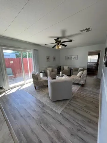 Stylishly Updated Home Where You OWN the Land!Welcome home to this beautifully refreshed 2-bedroom, 2-bath gem in the desirable Tri Palm Estates & Country Club. Step inside to find new flooring, fresh paint, and updated lighting and plumbing fixtures that give the home a bright, modern feel. The open layout flows effortlessly from the spacious living room–with picture windows that flood the space with natural light–to the dining area and cozy family room with sliding doors to the covered patio. There’s even a dining bar at the attractive kitchen island. The updated kitchen and baths blend style and functionality, while both bedrooms feature generous walk-in closets. The home is partially furnished with tasteful decor and includes all appliances, making your move easy and stress-free.Enjoy the convenience of a gated carport, ample parking, and an inviting backyard ready for your personal touch.Best of all, Tri Palm Estates is an active 55+ community where you own the land and enjoy unlimited free golf on two beautiful courses. Take advantage of resort-style amenities–pools, spas, tennis, pickleball, shuffleboard, and a clubhouse with a restaurant, bar, and social events. Ideally located near Costco, Home Depot, Agua Caliente Casino, Eisenhower Medical Campus, Acrisure Arena, and just minutes from Palm Springs and Palm Desert dining, shopping, and entertainment.Move-in ready, beautifully updated, and packed with amenities–this one checks every box!
