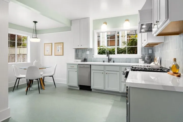 A new unicorn sighting in MidTown! The rarest of opportunities nestled in the perfect Eastside/Seabright location, w/an off the charts walk score, desirable banana belt weather, multi-gen lifestyle options & an artful blend of old & new w/2 detached homes that have been lovingly renovated. A 1920s single level, 2br, 1ba original craftsman bungalow w/all the soulful vintage touches preserved, recently updated w/new kitchen, bath, refinished fir floors, new roof, interior/exterior paint. Sunny enclosed front sitting porch, period built-ins, trim & molding, vintage rolled glass windows & modern lighting. PLUS a stunning, new custom 2br, 1.5ba home w/its own soulful contemporary feel that has a soaring loft style design w/dynamic architectural lines & 22′ ceilings. Open kitchen/living, bar seating, quartz counters, tile backsplash, custom cabinets, wide plank LVP floors, AC Mini-split system, floating stairs, designer italian tile & 1 car garage. Don’t miss the detached bonus studio room perfect for office or workout/art space! Private, quiet urban garden ambiance, w/low maintenance landscaping. MidTown amenities, Shoppers Corner, Buttery, Whole Foods, Beach & Downtown are all just a hop, skip & a short bike ride away. Easy on/off for over the hill commute. This one is special.