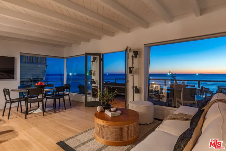 Malibu coastal lifestyle with nearly 70 feet of sandy shoreline. This 3-bedroom, 2-bath home sits directly on the sand offering true oceanfront living with direct access to the water. The primary suite opens to an expansive beachfront deck creating seamless indoor-outdoor flow and panoramic ocean views. Two guest bedrooms complete the interior, each designed for comfort and privacy. The deck provides generous space for dining, lounging, and entertaining with sweeping views from Catalina to the Channel Islands. Private stairs descend to the beach for effortless access to the ocean perfect for paddle boarding, kayaking, boogie boarding, snorkeling, or more adventurous pursuits such as surfing, kite surfing, spearfishing, and open-water boating. A beach-level hot-water shower adds comfort after time in the waves. Dolphins, sea lions, and seabirds are frequent sights, with migrating whales visible offshore during the season. The location combines the privacy of direct beachfront living with proximity to Malibu’s best amenities. Scenic trails wind through the nearby Santa Monica Mountains. Neptune’s Net a longtime local favorite offering fresh seafood and ocean views is a short stroll away, while Trancas Country Market and Point Dume offer additional dining and boutique shopping just minutes up the coast. Experience Malibu beachfront living at its best where the sand is your backyard and every sunset is unforgettable.