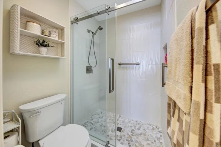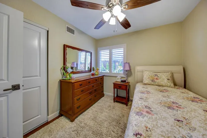 Make this fully upgraded property your next home. Both bathrooms have been completely remodeled – new quartz counters, tile tub enclosure in the hall bath, and new cabinets. The master bath has a brand-new walk-in shower and dual vanity. The front door opens to a warm and inviting great room with cathedral ceilings. The kitchen has a sit-up peninsula great for chatting with the cook! Hardwood floors throughout the living area are a nice finishing touch. The lot is deep, and the lawn is easy to care for with sprinklers and drip irrigation in the raised planters. A large patio at the back is just off the living area and kitchen. All front yard maintenance is included in the HOA fees. The Central AC and Heating are high efficiency, newer and are controlled by a smart thermostat. All windows have high-end shutters for privacy. Foxhill Estates has a community pool and has one entrance/exit right next to Greg Rogers Park and Elementary School. The Sharp Chula Vista Hospital is less than a mile away. Come and see if this could be your new home!