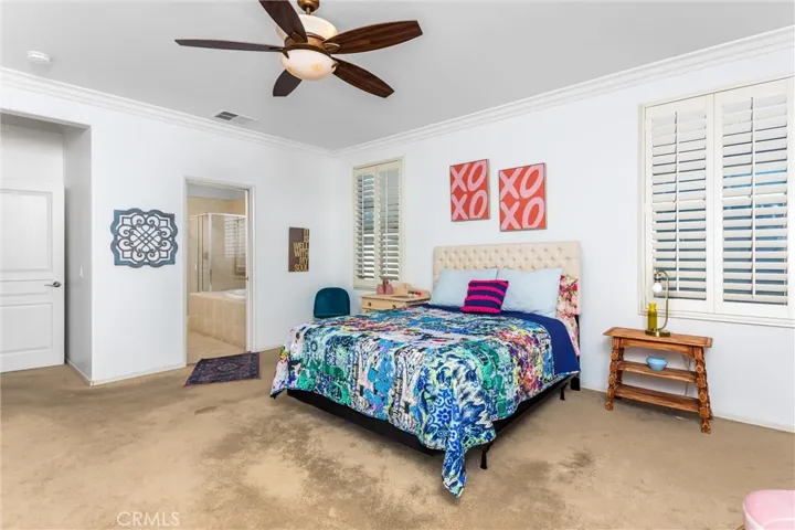 Single-family home 2043 sq ft. in Four Seasons Community in Beaumont. It is a 2-bedroom, 2 bathrooms, home and a den. the Interior features an open concept, a formal dining area, a custom-build in entertainment cabinet. plantation shutters all around the home. It has a covered patio. Is 55+ Community that offers many amenities including three clubhouses, three pools, three gyms and various Sport Courts pickleball, tennis, basketball, horseshoe, shuffleboard movie theater, Beauty salon and a Bistro.