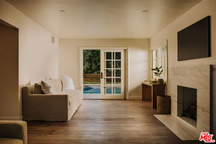 Perfectly tucked away on a peaceful cul-de-sac in Mandeville Canyon, this exquisitely reimagined traditional home offers warmth, sophistication, and a seamless blend of classic charm with modern comfort. Step inside to discover soaring vaulted ceilings and sun-filled interiors that set a warm and welcoming tone throughout that exude an inviting elegance. The main level unfolds with a spacious formal dining area, a gourmet chef’s kitchen, and a sunken living room centered around an elegant fireplace. The chef’s kitchen showcases generous granite countertops, custom cabinetry, and seamless flow into the family room complete with built-ins, recessed lighting, and French doors that open to a serene outdoor sanctuary. A convenient downstairs bedroom and bath offer flexibility for guests or an ideal home office. Adjacent you will find a family lounge provides direct access to the backyard perfect for children or casual entertaining. Extensive windows and doors invite natural light and viewpoints of the lush backyard, creating a seamless indoor-outdoor connection ideal for entertaining. The interiors extend gracefully to the private backyard oasis, where lush landscaping frames a large swimmer’s pool, a relaxing spa, and grassy yard ideal for lounging or gathering around the fire pit beneath the stars. Upstairs, three additional bedrooms offer comfort and tranquility, including a serene primary suite that captures the essence of Mandeville Canyon living. Every space feels calm, curated, and connected to nature. Additional features include Rose Uniacke lighting throughout, Waterworks plumbing and a coveted corner lot that offers both privacy and curb appeal. With ample garage space for parking or storage, this home perfectly blends functionality and style. A true Mandeville Canyon gem, this residence embodies the best of Southern California living, where comfort, beauty, and community come together.