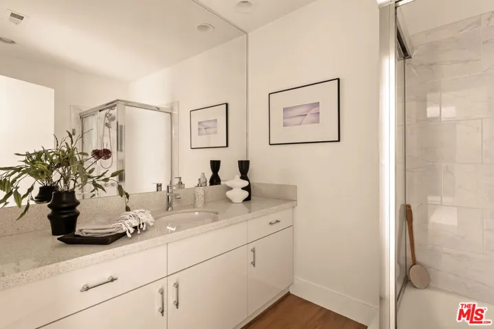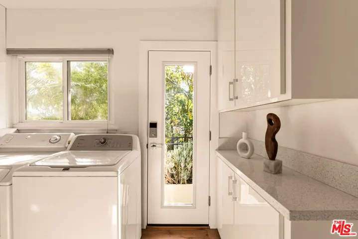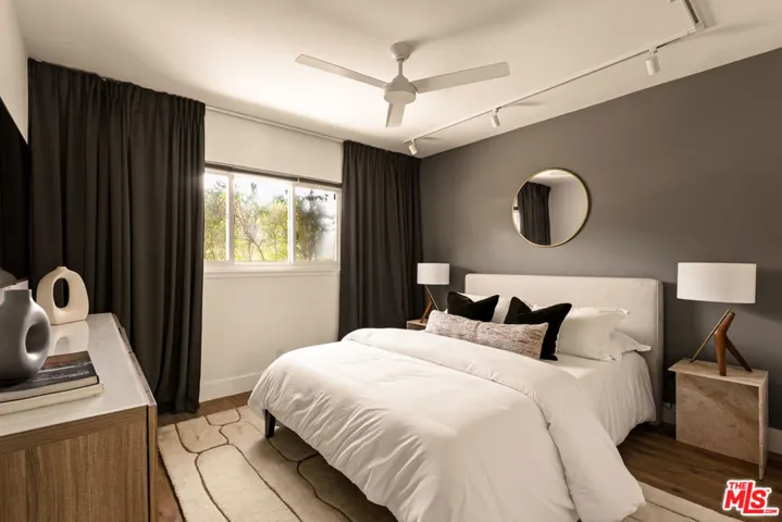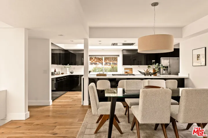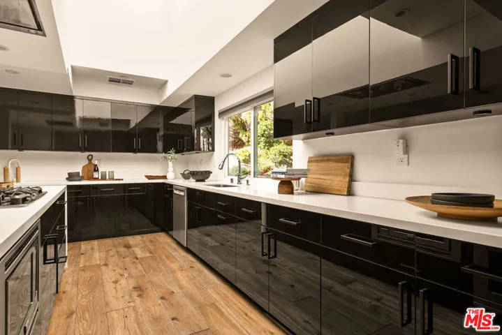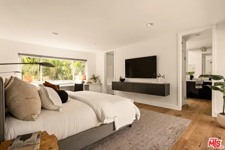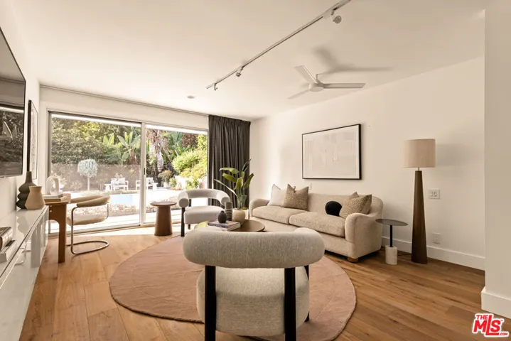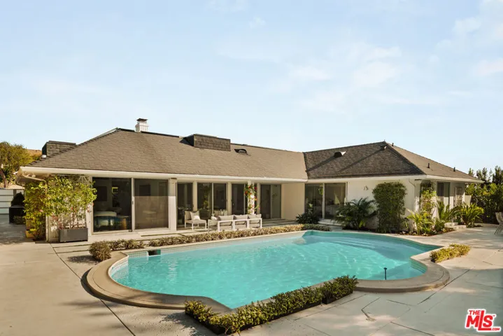 Nestled on the western edge of Griffith Park, this sleek 1964 single-story pool home with an effortless indoor/outdoor flow, is giving Palm Springs vibes in the Los Feliz Estates. Chic double-doors draw your eyes westward toward a sophisticated foyer with sightlines through the step-down living room’s wall of floor to ceiling Fleetwood doors, to the heated, shimmering swimmers’ pool which overlooks the verdant trees of Griffith Park’s Fern Dell, making for a lushly secluded retreat. The open floor plan encompasses a grand living room with a natural flow to the pool and its many lounging areas. A marble and stone hearth anchors the room while the skylights soar above, and wide plank, oak floors tie the entirety of the home together. The kitchen, with its picture window framing outdoor greenery, is illuminated by even more skylights. A cozy breakfast area allows access to the palm-obscured front patio, for coffee, while enjoying the morning sun. Plentiful cabinetry and counterspace complement the vast quartz peninsula with waterfall edge which fluently establishes a connection to the semi-formal dining room. A pool facing convertible den/guest suite with a bath and a secret door complete the northern side of the home. Tucked just off the living room is versatile second bedroom suite which houses the technology/media closet, just across the hallway, a larger bedroom with its verdant view will make you feel like you are miles from the city! A full bath sits right outside its door. The primary suite has swagger! Generous in size, it features a wall of windows welcoming dappled southern light during the day. Sliding doors open to the pool allowing for a clandestine evening dip. The primary bath is a master class of equity! Separated by a sunken Roman tub with shower, each side possesses its own sizeable vanity, large custom closet, and W/C. Naturally, there are sliding doors from the tub to the outside. Swanky! A large, attached garage with utility sink, built-in storage and workbench enters the home through the convenient laundry/mud room. The grounds are tranquil. The understated exterior is graced with vining plants and palms along with established shrubbery, which hinders the view of neighbors, while setting the tone of serenity. Griffith Park hiking trails, the Greek Theater, and the Observatory are easily accessible, while the shops and restaurants on Vermont and Hillhurst are mere blocks away. Some of the many thoughtful upgrades include Velux Skylight and Samsung Smart Home systems. Most rooms are triple-wired with CAT5 data cables. Samsung Frame TVs. Hard-wired speakers throughout the living room and pool area. Central HVAC. The HOA provides a 24-hour Patrol and much more.