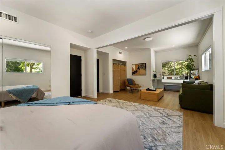 Welcome to the BridgeHouse Estate, a privately gated celebrity retreat hidden in the hills of Studio City. Set on a sprawling 15,000+ sq ft lot and surrounded by lush greenery, this property is introduced by a dramatic 60-ft bridge that stretches over a natural creek and guides you to the front door. Inside, the beautifully updated open-concept floor plan boasts lofty 10-ft ceilings and floor-to-ceiling windows that flood the space with warm natural light. The designer kitchen is a culinary enthusiast’s dream, equipped with top-of-the-line appliances, elegant quartz countertops, custom cabinetry and a massive waterfall island with seating. Open to the kitchen, the spacious living room and formal dining room are illuminated by sleek modern fixtures, including a statement Hanami chandelier and state-of-the-art Lazer Line lighting system. Step outside to a secluded backyard retreat highlighted by a sun-drenched patio, low-maintenance artificial turf yard and built-in BBQ, perfect for effortless outdoor entertaining. The second floor offers a full bathroom and two bedrooms that have been combined into a single, expansive space, but can easily be reconfigured back into individual rooms if desired. On the upper level there’s a flexible loft space and two additional bedrooms/bathrooms, including a chic primary suite that features a custom walk-in closet and sumptuous bathroom, complete with a rainfall shower, double vanity and soaking tub bathed in natural light. You’ll also find an expansive rooftop terrace with treetop views and a separate deck area with a private hot tub. Additional highlights include a laundry area, finished two-car garage with ac (offering potential for an office, gym, studio or bonus living space), EV charging station and potential to expand the interior living space. Ideally located south of the Boulevard within the coveted Carpenter School District, this one-of-a-kind architectural masterpiece is just minutes away from the vibrant shopping and dining scene found along Ventura Boulevard, Fryman Canyon hiking trails, the Sunset Strip and so much more.