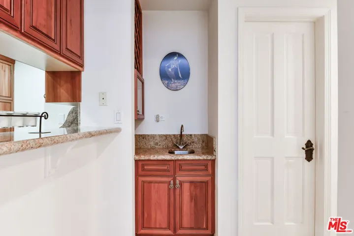 Spacious condominuim unit in the heart of Brentwood, Amazing Open-concept, split floor plan, a seamless flow gives this unit the feeling of more spaciousness and airier in prime location of Brentwood; a Light and bright unit w high ceilings, Recessed lights throughtout; Kitchen features SS built-in appliances, granite countertops, custom cabinetry, and trash compactor; Wet bar; Dinning room boasts a luxury chandelier and a marble floor covering; Living room features a fireplace, marble floor covering, opens to a private balcony; Master bedroom has a spa-like hydro jet bath tub with separate standing shower, double sink, walking closet, and access to balcony; 2nd bedroom is well-sized w closet and bathroom sits just outside a private hallway, both bedrooms have wide plank hardwood floor covering; Generous, continuous balcony connects the living room and primary suite; side by side washer & Dryer in unit, plenty of closets and one garage storage, Central A/C & heating, 2 car parking spaces in gated community w plenty of guest parking, Proximity to UCLA campus, Walkable to San Vicente, numerous upscale shops, restaurants, Brentwood farmers market, Brentwood circle, and Barrington Park.