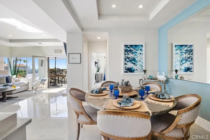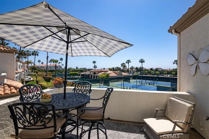 Beautiful, contemporary OCEAN VIEW condominium in Monarch Beach’s prestigious and exclusive gated community of Tennis Villas. Expansive views of the ocean, Catalina Island, trees, hills, city lights, sunsets, tennis courts, and Waldorf Astoria Resort & Spa just across the street. Perfect location for enjoying the best the coastal region of South Orange County has to offer. This condo is within walking distance of Salt Creek Beach, Monarch Links Golf Course, the Waldorf Astoria, the Ritz Carlton Laguna Niguel, Strands Beach Park and numerous parks, shops, and restaurants. This beautifully remodeled upstairs condo is spacious, open, light, and bright with lovely views and is located adjacent to the Monarch Beach Tennis Club. Sit down ocean views from the primary bedroom, balcony, and living room! Some upgraded features include quartz and stone countertops, polished travertine flooring, stainless steel appliances, central AC and beautiful white cabinetry throughout the home. The kitchen area is opened up to maximize the wonderful ocean views and create a more cohesive and inviting living space. The west-facing balcony is off of the living room and primary bedroom, the best spot for unbelievable sunsets, ocean breezes, and stunning views. In addition, there is another balcony off the kitchen facing east – perfect for your BBQ and enjoying the morning sun. The primary bedroom has two closets (one walk-in), the guest bedroom has ample closet space, plus both bathrooms have been upgraded with walk-in showers and beautiful stone countertops. There is an interior laundry room with a washer and dryer. Two-car garage with storage cabinets which is below the condo so it is accessed by way of the stairs to the left of the garage. This is a private, gated community with an association pool and spa. Laguna Beach is also just minutes away with free transportation available via the Dana Point Trolley which connects to the Laguna Beach Trolley. There is a beautiful, scenic walking path by way of the resort, past the villas and golf course which leads you right to Salt Creek Beach. There are concerts and events during the summer in Sea Terrace Park. Live the Monarch Beach lifestyle and enjoy the perfect weather and climate year-round. This property is being offered FURNISHED (ideally for 6-12 months) and includes utilities. Tennis Villas is a non-smoking community. Tennis Club Membership is separate from the leasing of this property. Memberships are available.