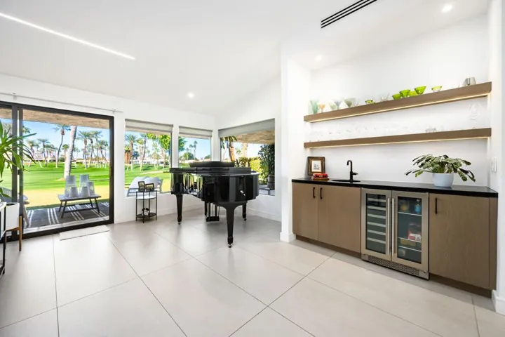 Welcome to this luxury Indian Wells Retreat with Breathtaking Views! This stunning 3-bedroom, 3.5-bath home offers 2,413 sq. ft of elegant living space in the prestigious Desert Horizons Country Club. Enjoy wraparound mountain vistas and an unparalleled fairway panorama from your expansive patio.Step inside to discover vaulted ceilings, custom tile flooring, and an open-concept layout that houses the living, dining, and gourmet kitchen areas. The kitchen is exquisite, featuring the finest appliances, custom cabinetry, and a spacious island perfect for entertaining.Each bedroom is ensuite, offering privacy and comfort, while the primary suite includes a beautiful bathroom, generous walk in closet and more serene views. Additional highlights include a 2-car garage, fireplace, and meticulously designed interiors that blend luxury with tranquility.Outside, the west-facing covered patio invites al-fresco dinners or quiet morning coffee while taking in the sunset over the mountains.Desert Horizons is a much loved community with numerous amenities including 24-hour gated security, community pools and spas, golf, tennis, pickle ball, fitness centre, bocce and a completely remodeled ClubhouseWhether you’re entertaining or seeking quiet serenity, this home offers the best of both — elevated finishes, stylish design, and the kind of view that never gets old.Also within a short distance to the best shopping and restaurants in and around El Paseo. Furniture available outside of escrow