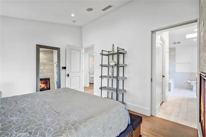 Upstairs, the primary suite is your retreat, with its own fireplace, Juliette balconies, and a luxurious en-suite bathroom featuring marble finishes, a walk-in closet, a jetted tub, and a separate glass-enclosed shower with a hand sprayer. Two additional bedrooms and another full bathroom complete the upper level.