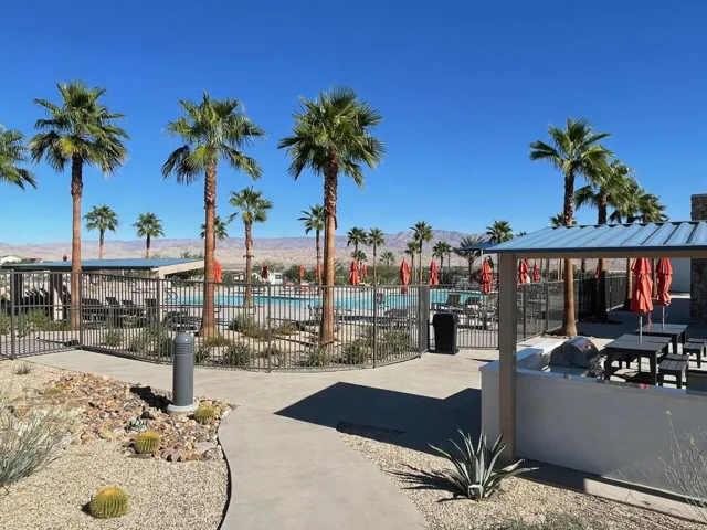 New construction 4-bedroom, 4.5-bath home with an additional private 2-room casita.Located in NOVA at University Park–one of Palm Desert’s newest resort-style communities–this modern two-story home offers bright, open-concept living with seamless indoor-outdoor flow. Large sliding doors lead to a finished backyard with open sky and mountain views.The main home features a beautifully designed kitchen with a large central island, modern finishes, and generous storage throughout. The open layout connects the kitchen to the dining and living areas, creating an ideal space for everyday living or entertaining. Upstairs, the spacious primary suite includes a large walk-in closet and a luxurious bathroom with a standing shower, soaking tub, and dual vanities. The secondary suite offers its own private bathroom, perfect for guests or family. Two additional junior bedrooms with full closets share a well-designed full bathroom that includes two separate vanities for added convenience. A full-size laundry room sits on the bedroom level for easy access.The private detached casita includes a separate entrance, living/sleeping area, kitchenette with mini-fridge and microwave, its own laundry hookup, and a full bathroom–ideal for multigenerational living, long-term guests, a home office, or a next-gen suite.This home also includes full solar, a home battery system, and EV charging, offering excellent energy efficiency and meaningful savings on utilities.Residents enjoy access to The Grove, a premier resort-style center featuring multiple pools (lap, adult & kids), spas, fitness center, pickleball, bocce, fire pits, a clubhouse, and a shaded playground. Centrally located near shopping, dining, hiking, golf, and major travel routes–all within a peaceful Palm Desert setting