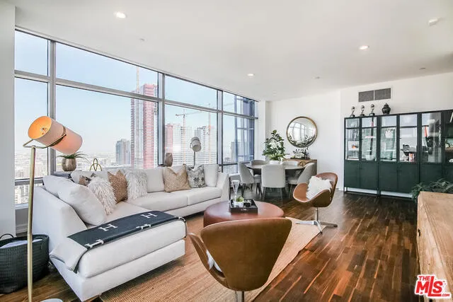 Experience the pinnacle of luxury living at the prestigious Ritz-Carlton Residences at LA Live. This stunning 32nd-floor northeast corner unit offers 2 bedrooms, 2.5 bathrooms, and sweeping floor-to-ceiling views capturing the Downtown skyline, San Gabriel Mountains, and even the iconic Hollywood Sign. Bathed in natural light, the spacious living and dining area flows seamlessly into a gourmet chef’s kitchen complete with top-tier appliances, Italian cabinetry, and elegant stone finishes. The home features motorized window shades, recessed lighting, and meticulously curated design details throughout. Retreat to the expansive primary suite with custom closets and a decadent spa-inspired bathroom featuring an oversized soaking tub and separate glass-enclosed shower. A well-appointed second bedroom also offers its own en-suite bath with a generous walk-in shower, perfect for guests or home office flexibility. Residents enjoy the unmatched white-glove service and exclusive amenities of a five-star hotel, including : 24-hour concierge, security, and valet parking, residents-only rooftop pool with private cabanas, fully equipped fitness center, screening room, billiard lounge, and conference/dining room, access to Ritz-Carlton room service & housekeeping. Located steps from LA Live, Crypto.com Arena, top dining, nightlife, and cultural landmarks, this is luxury living at its finest! An elevated urban sanctuary in the heart of Downtown Los Angeles.