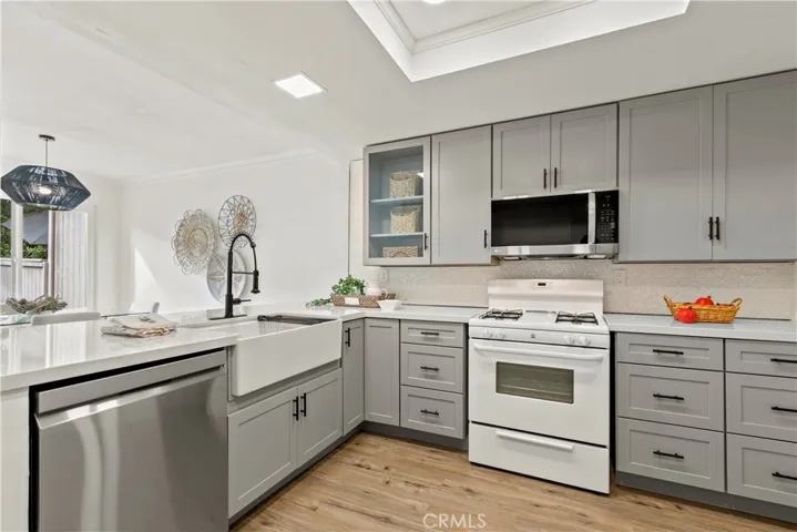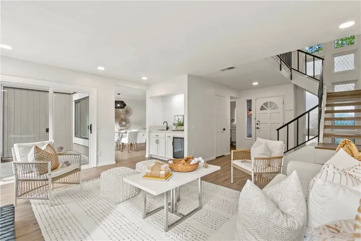 Bright, open, and full of natural light — this 3 bed, 2.5 bath townhome in one of Orange’s most sought-after communities is designed for easy, modern living. Step into a welcoming floor plan where clean lines, updated flooring, and sun-drenched spaces create a calm, stylish backdrop. The living room invites you in with a cozy fireplace and oversized windows, while the remodeled kitchen delivers both charm and function with granite counters, a farmhouse sink, generous storage, and a breakfast bar perfect for coffee mornings or wine nights.