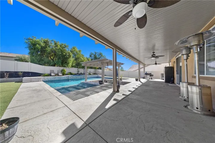 ***MUST SEE*** (Upgraded Pool) 5K towards closing Furniture included .. TURNKEY- This stunning modern farmhouse, featuring $265,000 in pool upgrades, offers a private backyard oasis complete with a sparkling pool, two waterfalls, a splash pad, and in-water seating beneath an elegant pergola. Spanning 3,404 square feet, the home includes five bedrooms, three bathrooms, and a cozy loft. The interior boasts luxurious vinyl plank flooring and a chef’s kitchen equipped with high-end appliances and a double oven. The spacious living room, highlighted by a gas fireplace, opens to a covered patio where you can enjoy the tranquil sounds of the waterfalls. Ideally situated near the 15 and 215 freeways, as well as various dining options and two Target stores, this property perfectly balances luxury and convenience. Opportunities like this are rare—don’t miss your chance to experience resort-style living every day! Schedule your private tour today before this dream home is gone!
