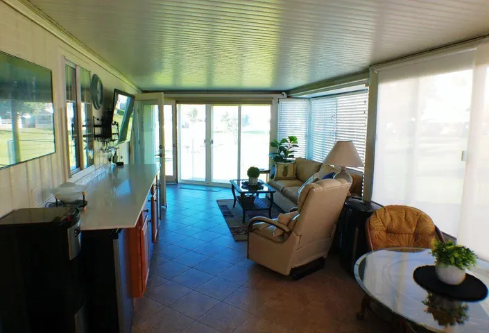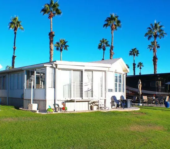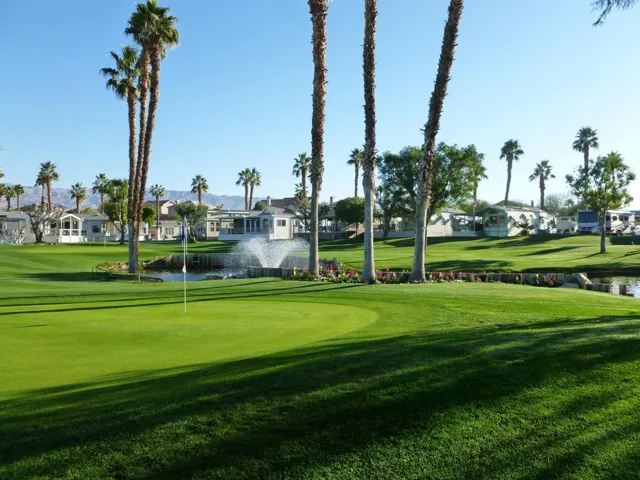 Wonderful Park Model located on the 10th Fairway with Mtn, Water and Golf Course Views. Enclosed semi-CA Room for more living space. Covered Parking and great Shed. Outstanding views of the 1st & 10th Golf Holes with a pond and aerator fountain. Views of the San Jacinto Mtns in background. Steps away from Club House 2, pool, spa Golf Pro Shop, lighted tennis courts.