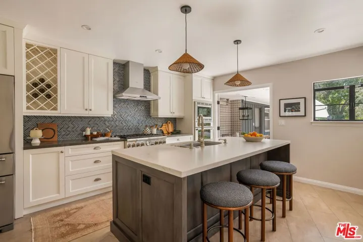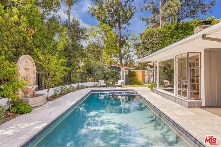 Fabulous mid-century one story ranch, set on a serene half-acre in the Studio City hills, embodies the essence of California living. Renovation designed by Studio ARKH. Home features three bedrooms including a primary suite, two baths, and a stylish guest powder room. The home blends classic architecture with modern design. An open-concept layout, hardwood floors, and premium finishes create an inviting, timeless feel. All main living spaces including the living room/dining area, kitchen, and primary bedroom open to the beautifully landscaped backyard, where a sparkling pool & spa and generous patio/seating areas set the stage for true indoor-outdoor living. Abundant natural light enhances every room. A private shared driveway offers added peace and security. A separated bonus yard is currently used for a private garden but could be used as a play area, your own dog park, or other opportunities. In addition to the garage is three private parking spaces. Lots of potential for future expanision. Located in the sought-after Carpenter School District and just minutes from Ventura Boulevard’s dining and shopping, this is a rare opportunity to own a piece of Studio City perfection.