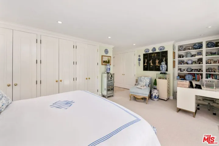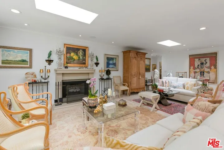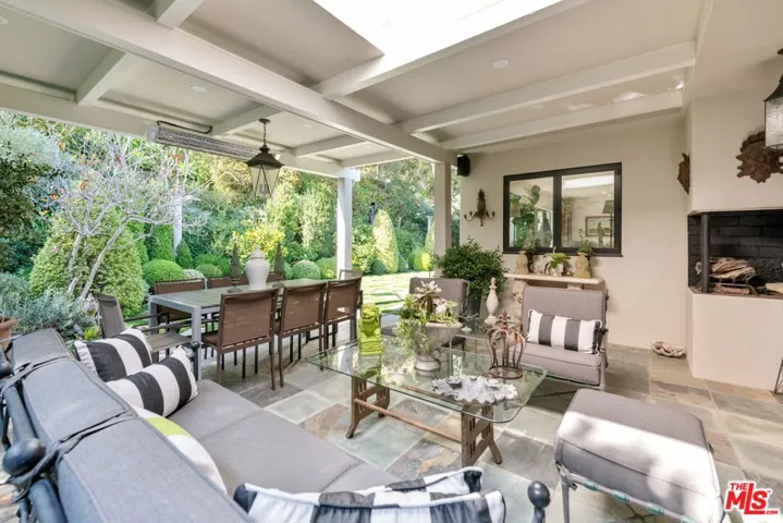 Extensively remodeled with exquisite taste and superior quality, this very special, light and bright one-story home harmoniously blends comfort and style and has been meticulously and painstakingly maintained. Its open and sensible floor plan begins at the formal foyer, leading to the sky-lit living room and dining area designed with the elegant entertainer in mind. This very expansive area, with its light-hued herringbone-patterned wood floors and two stone-clad fireplaces, opens easily to the backyard for seamless indoor-outdoor flow. The family room is warm and cozy with its wet bar and fireplace and opens to the fabulous outdoor living and dining room, complete with a barbecue area, outdoor fireplace and comfort heaters. The chef’s kitchen has a breakfast area, quartz countertops, stainless steel appliances and double ovens. There are four bedrooms in total. The primary suite, also opening to the backyard, is truly wonderful with its ample closet space, many built-ins, beautiful spa-like bath and sitting area. Adjacent are two spacious bedrooms sharing a tasteful hall bath. The fourth bedroom is located by the kitchen, perfect as a gym, nanny’s or housekeeper’s room. The backyard is nothing short of glorious, every inch professionally landscaped. A true paradise, there is natural beauty to behold everywhere, all amidst the soothing sounds of an artfully-crafted cascading waterfall. There’s also a separate multi-purpose art studio in the backyard, as well. Extensive updates, many of them quite recent, include central air and heat, metal doors and windows, many exquisitely-crafted built-ins, multiple skylights, recessed lighting, art-focused lighting, a separate generator connected also to the gas line, a Tesla car charging port, a new roof, a security system and so much more. The garage has extra storage and offers direct access into the house. Please ask the agents for a comprehensive list of updates. Inclusion in the very desirable public school districts which include Kenter Elementary School, Paul Revere Middle School and Palisades High School. All this, moments from the town center with all the shopping, dining and services that Brentwood offers.