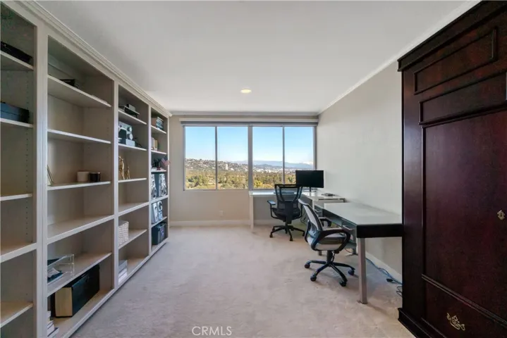 Sophisticated Luxury Living overlooking the Los Angeles Country Club! Experience refined elegance and panoramic views in this stunning 2-bedroom, 2-bath condominium overlooking the pristine greens of the Los Angeles Country Club North. Situated on the 16th floor and facing away from Wilshire, this home is located on the quiet side of the building and offers sweeping vistas from every room. Uninterrupted views stretch across the Getty hillsides, Bel-Air and Holmby Hills, to Hollywood Hills and Downtown. Spanning 2,110 square feet, this expansive residence features an open-concept layout designed for both grand entertaining and comfortable everyday living. The entryway boasts sleek cove lighting adding a contemporary touch and highlighting the home’s architectural details. Expansive windows flood the interior with natural light by day and stunning sunsets by evening. The large custom kitchen with a grand center island is a true showpiece, featuring exquisite birdseye maple cabinetry and matching granite countertop. The primary suite offers a serene retreat with custom dark wood closets and a marble-clad steam shower that evokes a spa-like atmosphere. The second bedroom and bath mirror the same high level of craftsmanship and design. A separate walk in laundry room offers ample closet space and storage. Additional highlights include custom lighting and CAT-6 wiring throughout the home. Every detail has been thoughtfully curated to create a timeless, sophisticated aesthetic. Located moments from Beverly Hills, Century City, and Westwood, this residence combines privacy, prestige, and unmatched views in one of Los Angeles’ most coveted settings.