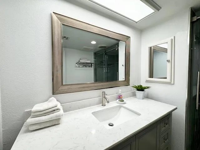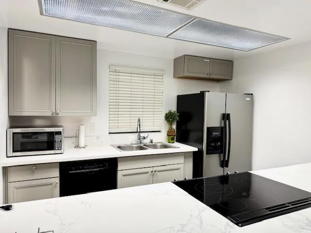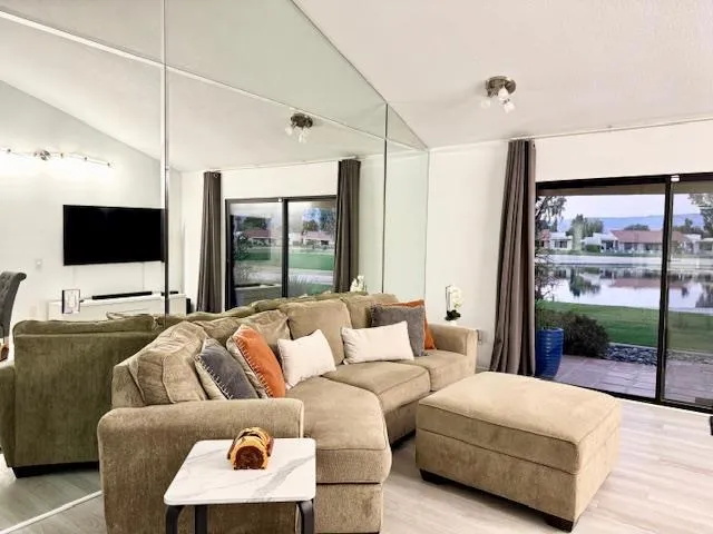 Welcome to your dream home in Palm Desert! This charming residence was recently upgraded. It offers 1,177 square feet of comfortable living space, featuring two bedrooms and two full bathrooms. The kitchen is a chef’s delight with quartz and solid surface/Corian countertops, a skylight, and modern appliances including a microwave, oven range, and refrigerator. The open layout seamlessly connects the kitchen to the family room, creating a perfect space for entertaining. Enjoy the convenience of an inside laundry area, complete with a washer and dryer. The home’s flooring consists of durable tile and vinyl/linoleum, providing both style and easy maintenance. The high and vaulted ceilings that enhance the sense of space. Beautiful view of golf court and pond from the living room and bedrooms on both side. The awning in the backyard will help to provide some shade in the hot season. The swimming pool is conveniently located across the street. This Palm Desert gem is ready for you to move in and start making memories.