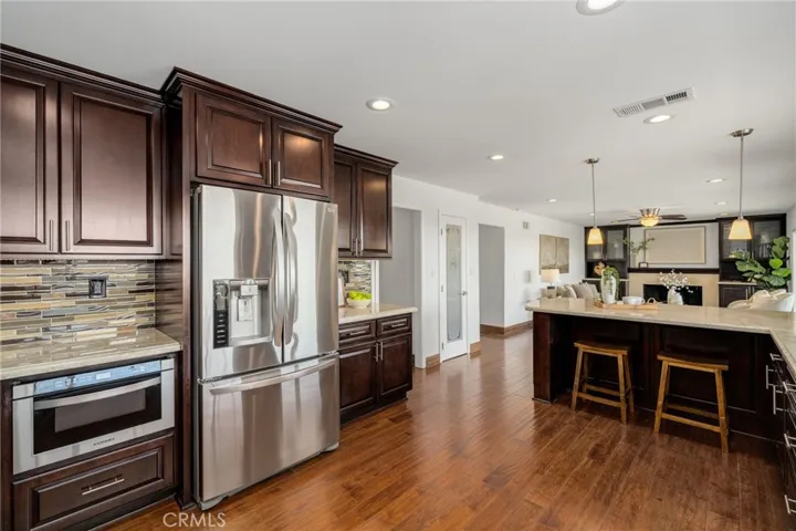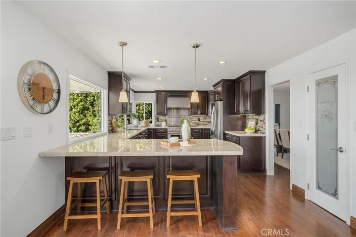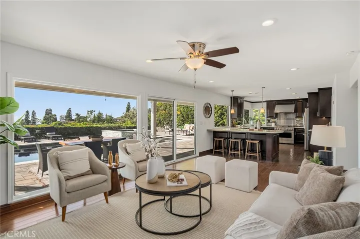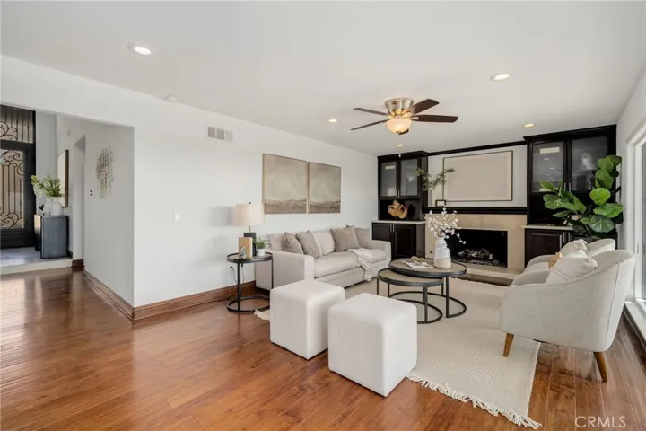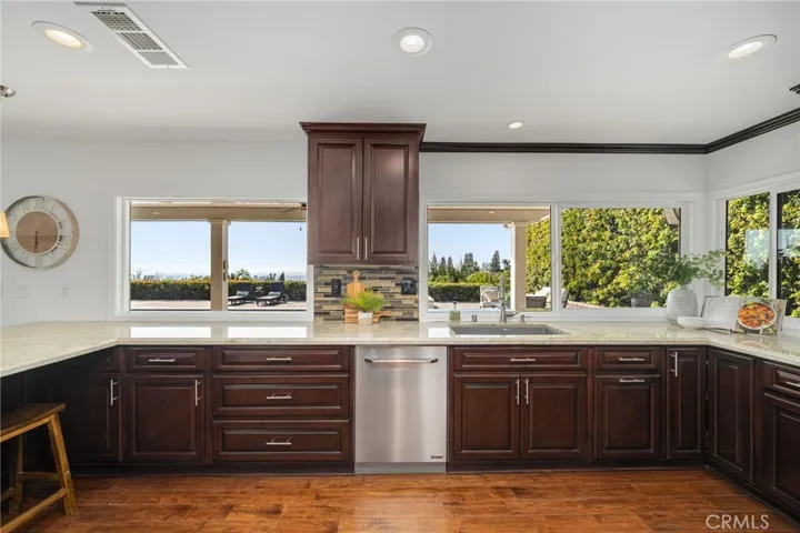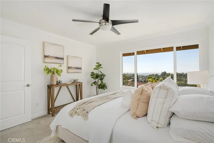 Perched in prestigious Friendly Hills, 16126 Lomacitas Lane is a beautiful 5-bedroom, 3-bath residence that pairs timeless appeal with modern luxury. Set on an elevated lot, the home captures expansive views stretching toward Long Beach, Catalina and the Pacific Ocean, enjoyed from every room and the private backyard—an exceptional backdrop for both daily living and sunset entertaining. Thoughtfully updated throughout, this home features a remodeled kitchen and baths, fresh interior paint, recessed lighting, updated windows and sliding doors, new interior doors, crown molding, a custom staircase bannister, and an elegant custom double-door entry that sets the tone upon arrival. A main-level bedroom offers versatility for guests, a private office, or multi-generational living. The primary suite is a refined retreat, showcasing a spa-inspired air-jet soaking tub with chromatherapy lighting, rainfall shower, electric fireplace, walk-in closet, and custom cabinetry—designed for relaxation and comfort. Step outside to your private backyard oasis, where an updated saltwater pool with solar heating, a party-size spa, fire pit, and covered patio create the perfect setting for entertaining or relaxing under the Southern California sun. With solar and battery backup paid in full, energy efficiency comes standard. More than just a home—it’s a lifestyle, where modern comfort, breathtaking views, tree-lined streets, and community charm come together in one exceptional property.