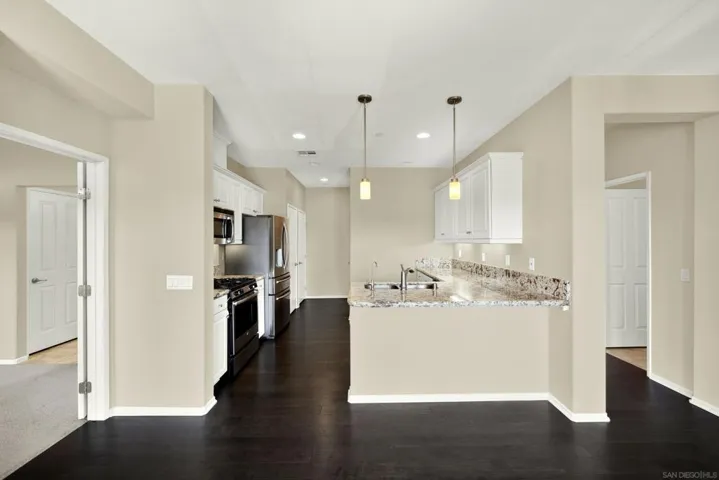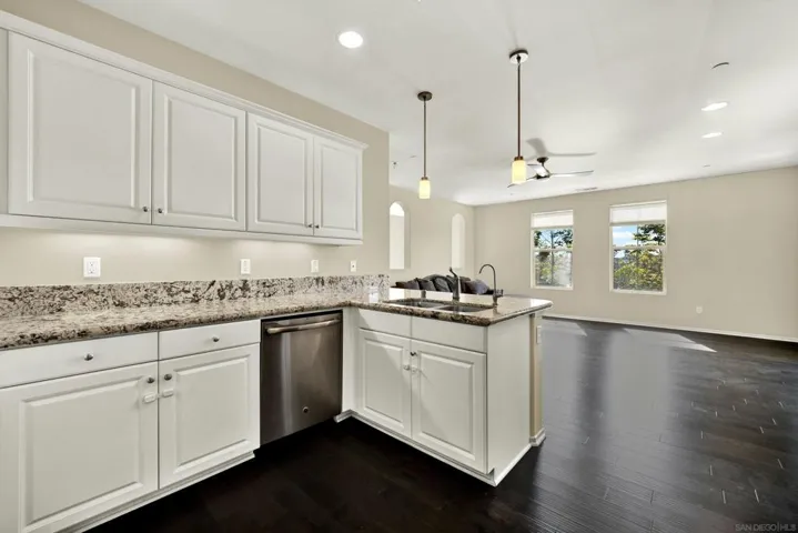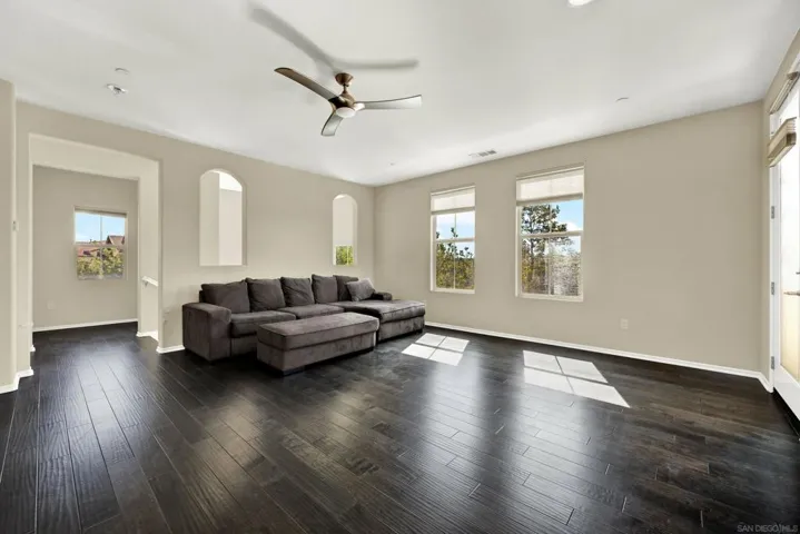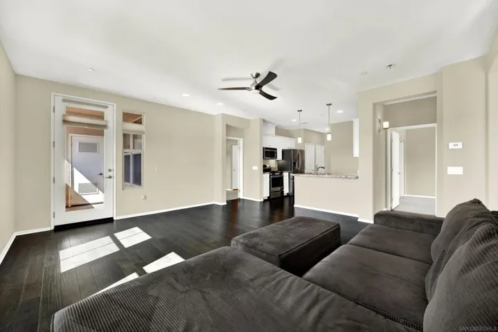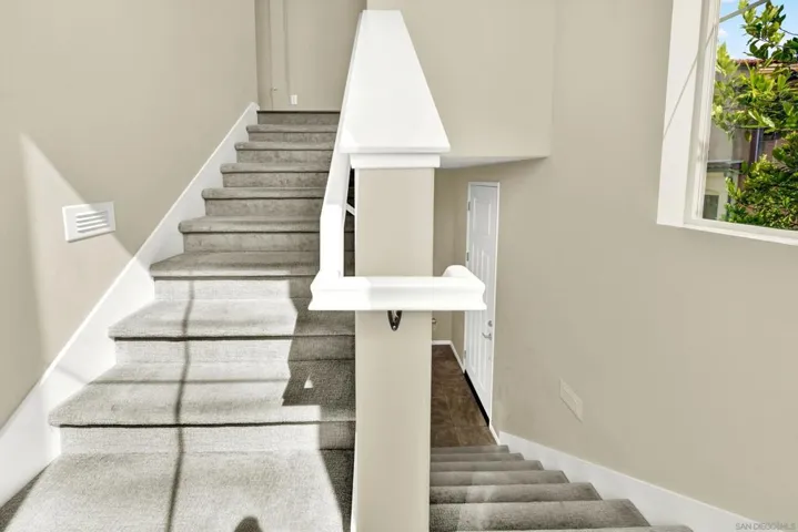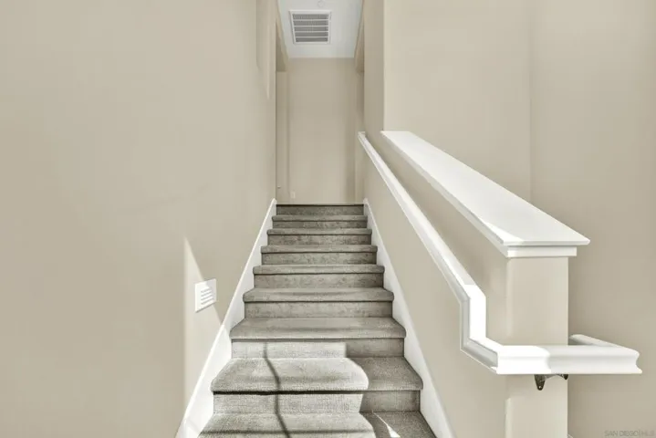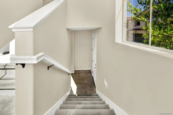 Nestled in the desirable Sorrento Ridge community, this corner lot, light-filled 2-bedroom, 2-bath condo offers an ideal blend of comfort, privacy, and convenience. The upper-level layout welcomes you into an inviting living space featuring vaulted ceilings, abundant natural light, and beautifully maintained hardwood floors throughout the kitchen, dining, and living area, offering a seamless flow and warmth through the property. A southwest-facing balcony, with panoramic views is the perfect spot to unwind while taking in serene canyon and greenbelt views. The primary suite enjoys complete privacy with its own attached full bath, while the second bedroom and additional full bath provide flexibility for guests or family. A bonus nook offers an ideal space for a home office, reading area, or creative studio, perfectly suited to modern living needs. An attached garage provides convenience and secure parking with direct access, with an additional reserved parking spot steps away. Residents enjoy access to a range of community amenities including a pool, playground, and beautifully maintained grounds managed by the HOA. Located just minutes from Sorrento Valley’s biotech and tech hubs, this home offers quick access to hiking trails, shopping, dining, major transit routes, and the coast—making it a peaceful retreat that remains close to everything. This is your opportunity to own a low-maintenance, contemporary sanctuary in a prime San Diego setting.