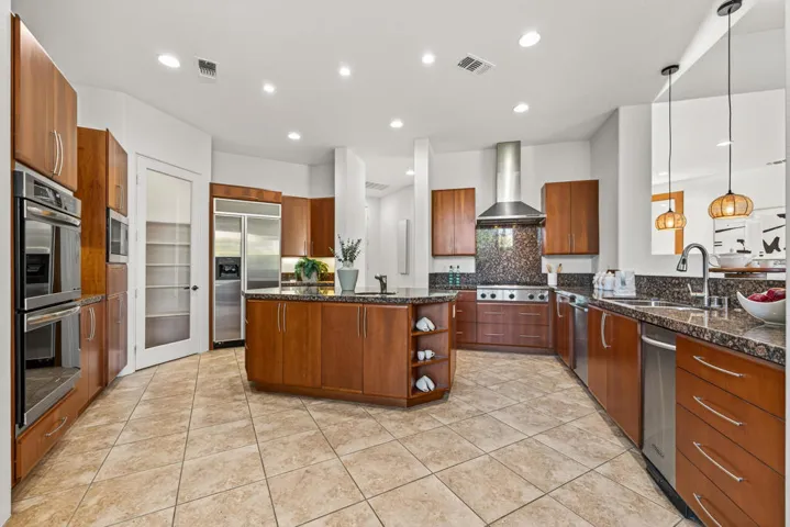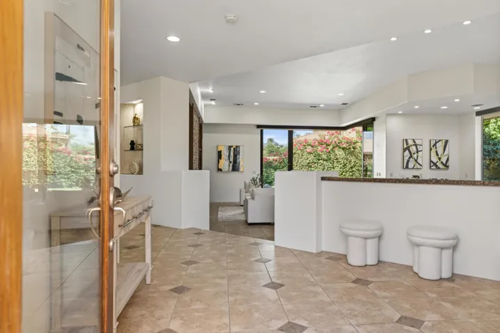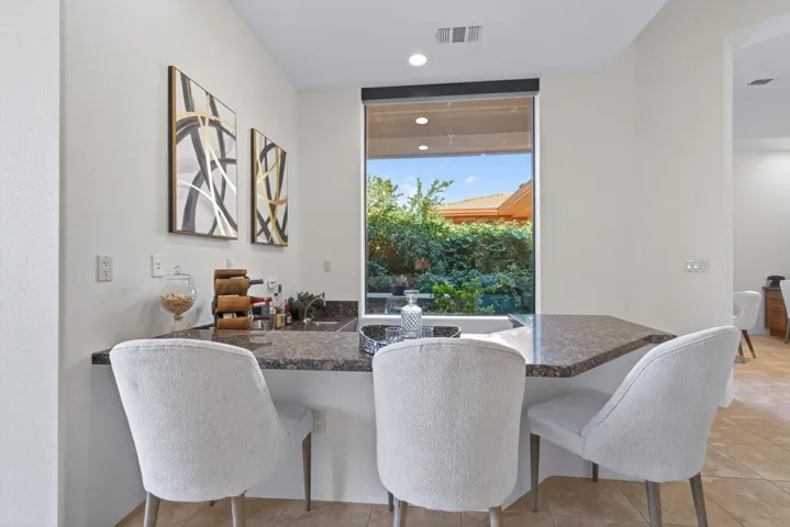 Welcome to Palmilla, La Quinta’s premier guard-gated enclave where modern desert architecture meets serene luxury. This rare, detached Palo Brea residence–one of only six in the community–offers a coveted blend of privacy, design, and lifestyle. Technically a 3-bedroom home, this layout lives more like a 2-bedroom plus office/den, with the third bedroom thoughtfully configured as a dedicated workspace–ideal for remote professionals, creatives, or a quiet retreat.Step through the courtyard into a light-filled, open-concept interior with stacking glass doors, a cozy fireplace, and elegant tile flooring. The chef’s kitchen features premium stainless appliances, generous prep space, and seamless flow for entertaining.Out back, enjoy a west-facing private oasis with mountain views, vivid sunsets, and a sparkling pool and spa–perfect for unwinding or hosting under the stars. The oversized patio and fully enclosed yard are ideal for pets, play, or peaceful reflection.Additional highlights include:Freshly painted interior, walls, ceiling, and doors. Brand new Berber carpet in bedrooms and office. Air-conditioned ‘Costco room’ for bulk storage. Dedicated golf cart garage. HOA-maintained front landscaping. Quiet interior location within the community. Palmilla is minutes from world-class golf, dining, and shopping, yet feels worlds away. Priced for immediate sale, this is your chance to own one of Palmilla’s most unique and pet-friendly retreats. Exceptional value. Rare model. Unmatched lifestyle.
