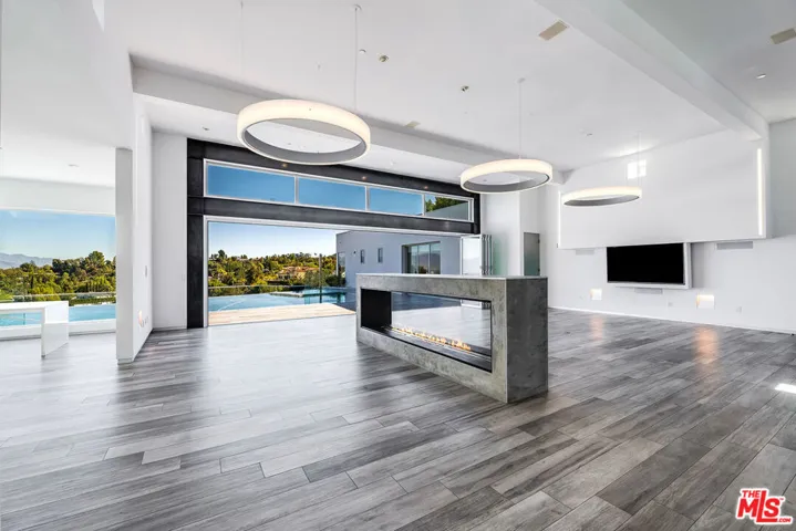 Stunning Single-Story Modern in Prime Encino Hills. Experience sleek, contemporary living in this sensational one-story modern home, perfectly situated on a quiet cul-de-sac in the heart of Encino Hills. Designed with high ceilings, gallery-style walls, and expansive floor-to-ceiling glass doors and windows, this home offers an open, airy floor plan ideal for entertaining and showcasing breathtaking canyon and city light views.Built from the ground up in 2015, the residence embodies clean architectural lines, sophisticated finishes, and seamless indoor-outdoor flow. The entertainer’s backyard features a sparkling swimmer’s pool, sun-drenched patios, and multiple spaces for dining alfresco or simply relaxing in style.The spacious primary suite offers a serene retreat with exceptional closet space and a luxurious en-suite bath. Three additional bedrooms provide ample comfort for family or guests. The gourmet kitchen is a chef’s dream, featuring stainless steel appliances, a large center island, and an ideal layout for cooking and entertaining alike.Slide open the glass doors to invite in the surrounding natural beauty…this is California living at its finest.