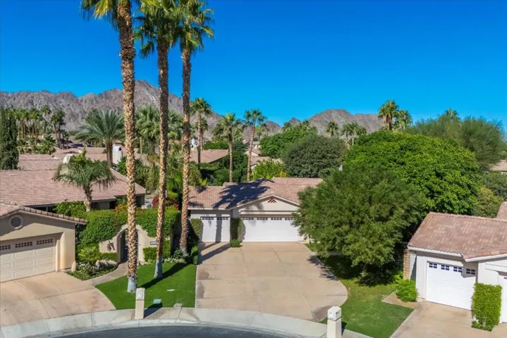 Welcome to your next chapter in the Ventanas at Rancho La Quinta Country Club. This turnkey furnished Malaga home sits on a private, oversized cul-de-sac lot. The experience begins in the tranquil courtyard, leading to an interior defined by abundant natural light and seamless tile flooring. This is a home built for celebration; imagine hosting family and friends from the gourmet kitchen, equipped with a Viking range and hood, dry bar, and wine chiller. The true heart lies outside, where the oversized yard offers an unforgettable retreat. Picture yourself relaxing in the freeform Pebble Tec pool and spa, watching spectacular desert sunsets over the Santa Rosa Mountains. The built-in barbecue and shaded patio are ideal for al fresco dining. The primary suite is a sanctuary with a soaking tub and dual vanities. Featuring three bedrooms, three bathrooms, and a three-car garage with epoxy floors and custom cabinetry, every detail is accounted for. This property is a gateway to the quintessential Rancho La Quinta lifestyle, all presented with contemporary furnishings and the potential for future expansion on one of the largest lots. Come, write your story here.