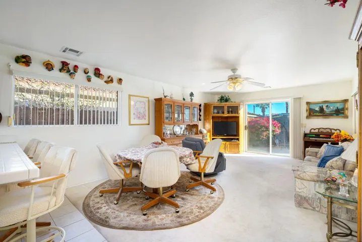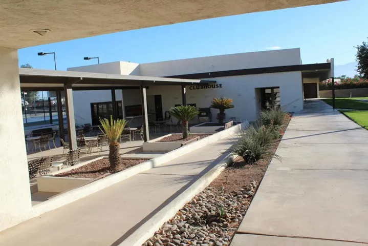 Beautifully maintained, single family home in the much sought after Desert Grove (55+) community. Quiet location convenient to pool and spa area. Two large bedrooms with walk in closets, two large bathrooms, and separate indoor Laundry room. This home has an attached two car garage for plenty of storage. Upgraded cabinets in kitchen with garden window which offers a lovely Mountain view. There are also Ceiling fans in each room. Desert Grove is an active, pet friendly, gated community with two pools, two spas, tennis, billiards, pickleball, clubhouse and paved RV parking available for rental onsite. This is a custom SFR – not a manufactured home.