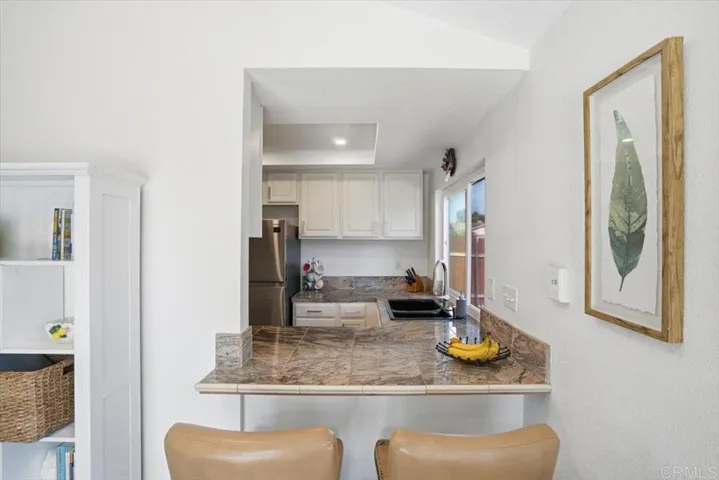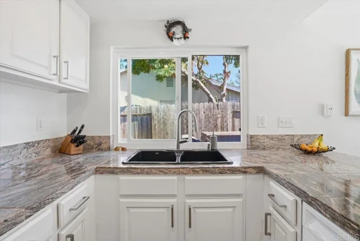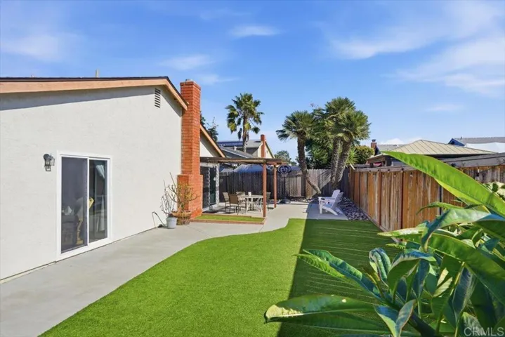 Beautifully maintained single-story Oceanside home that’s move-in ready! Enjoy an open-concept living, dining, and kitchen area with a fireplace, vaulted ceiling, ceiling fan & recessed lighting, as well as sliding door access to the backyard. The kitchen features a breakfast bar, window overlooking the side yard, built-in microwave, electric ceramic cooktop, dishwasher, tiled granite countertops, dual Kohler sink, and pantry. The spacious backyard offers an ideal space for entertaining or relaxation, with a blend of concrete patio areas, synthetic grass (installed 2024), a wide side yard, and an above-ground spa. The primary bedroom includes a walk-in closet and sliding glass door access to the backyard. The updated primary bathroom features a newly tiled shower (2025). The second bedroom is generously sized with mirrored closet doors and a ceiling fan. Additional highlights include 2025 luxury vinyl plank flooring, 3-year-old Trane HVAC system, dual-pane windows and sliders, ceiling fans, recessed lighting, drought-tolerant front yard, and a 2-car direct access garage with gas & electric laundry hookups and some built-in storage. Don’t miss this amazing home, a must see! Conveniently located near Guajome County Park, Downtown Oceanside, and Tri-City Medical Center.