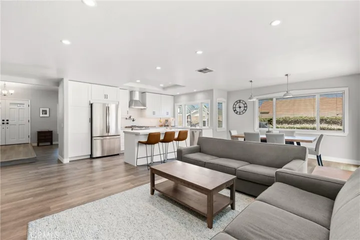 Welcome to one of Huntington Beach’s most loved and sought-after family neighborhoods, the Moffett Tract. 20392 Drew Circle is located on a quiet interior cul-de-sac on a spacious corner lot, with RV potential, and no neighbors on one side. This beautifully remodeled single-story home offers both privacy and a strong sense of community. With nearly 1700 sq ft of open and inviting living space, the home features 4 bedrooms and 2 bathrooms, thoughtfully reimagined with modern, clean finishes and functional improvements throughout. The open and bright kitchen showcases shaker cabinetry, quartz countertops, stainless appliances, and an island layout perfect for entertaining and everyday living. The great room flows seamlessly to the dining and living spaces, all enhanced with large dual pane windows, recessed lighting, ceiling fans, and newer interior and exterior paint. The central furnace has been relocated to the attic, maximizing interior space and improving comfort. Both bathrooms are fully remodeled with modern finishes and spa-like appeal. The resort-style backyard is truly the centerpiece of the home—complete with a heated in-ground pool and spa, multiple lounging and dining areas, and ample room to enjoy sunrise coffee or sunset evenings under the coastal sky. The yard offers excellent privacy and year-round usability. The landscaping is supported by automatic irrigation for easy maintenance. Additional features include an attached 2-car garage, expanded driveway, and potential RV/boat parking options. Situated on an interior street with no cut-through traffic, the home offers a calm and peaceful feel while still being just minutes from everything Huntington Beach is known for—bike to the beach, Pacific City, Downtown HB, parks, and local dining. Families love the walkability to Moffett Elementary and Moffett Park, neighborhood block gatherings, and the friendly community feel. This home is truly move-in ready with zero initial improvement costs—every major system and aesthetic upgrade has already been completed. Simply settle in and start enjoying your perfect L3: Location, Luxury, & Lifestyle!