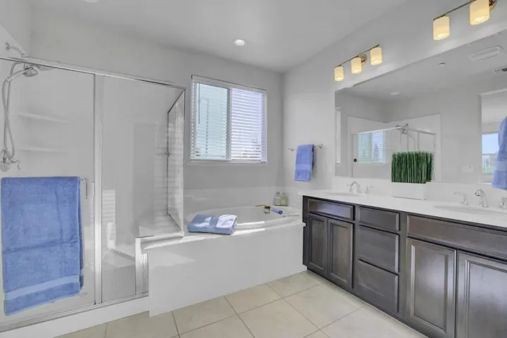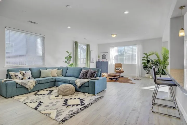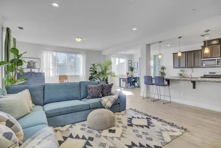 With its 2020 build and open, well-planned layout, this 4-bedroom, 2.5-bath single-family home offers modern finishes, flexible spaces, and great flow for everyday living. The open floor plan connects the kitchen, dining, and living areas, creating a bright and welcoming space filled with natural light. The kitchen features a large island with pendant lighting and an open view of the main living area, making it perfect for everyday connection and entertaining. Downstairs also includes a den or flex room that can serve as an office, playroom, or guest area. Upstairs, a spacious loft sits privately in its own corner, offering flexibility for a media room, study, or lounge area. The primary suite includes a separate soaking tub and stall shower for a relaxing retreat. The backyard is fully finished with a covered patio and plenty of room to unwind or entertain. The 5,660 sq. ft. lot provides outdoor space without extra upkeep, featuring low-maintenance landscaping. A tandem garage offers options for additional parking, a small shop, or a workout area. Conveniently located near shopping, restaurants, and with easy access to major highways, this home blends comfort, functionality, and convenience, ready for its next owners.