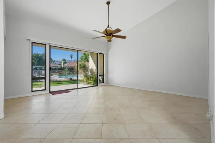 This South Palm Desert condo is perfectly situated within a serene cul-de-sac, offering breathtaking west-facing views of the mountains and a tranquil outlook onto one of the community’s three pools.This is a great opportunity to infuse your personal style and design preferences into every corner, transforming it into a home that perfectly reflects your taste and lifestyle. Spanning a generous 1,451 square feet, this thoughtfully designed 2-bedroom, 2-bathroom condominium provides an ideal blend of comfort and style. It also features a spacious two-car garage, offering ample storage and convenient parking.Step out onto your private patio to enjoy the lush green surroundings and the inviting waters of the nearby pool. Inside, a central atrium that bathes the living area in an abundance of natural light. This striking feature perfectly complements the impressive soaring ceilings, creating an airy and expansive atmosphere throughout the home.The HOA manages the controlled access gate, ensuring enhanced security, and handles all exterior maintenance, including the roof, building facade, and beautifully manicured grounds. It also takes care of all the pools, spas, tennis court and clubhouse. Beyond the community’s exceptional amenities, you’ll find yourself mere moments away from the world-renowned El Paseo, renowned for its unparalleled selection of high-end shopping, exquisite dining experiences, and vibrant entertainment options. Golf enthusiasts will appreciate the close proximity to numerous championship courses, while easy access to top-tier healthcare facilities further enhances the convenience and desirability of this prime location.Don’t miss the opportunity to enjoy desert living at its best in a prime location.