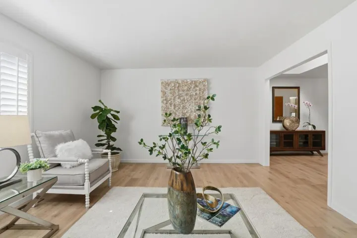 Tucked off the main road, this inviting home blends comfort, space, and modern convenience. Step inside to a sunlit living room with louvered shutters and rich honey-toned wood floors, offering flexibility for your favorite furniture setup. The adjoining family room features a charming fireplace and skylight that brighten the space year-round. The kitchen impresses with stainless steel appliances, generous counter space, and warm wood cabinetry, perfect for both casual meals and entertaining. Bedrooms are cozy with plush carpeting and ceiling fans, while the updated hall bath adds a modern touch. The spacious primary suite feels like a private retreat, complete with a stylish bathroom and a large walk-in closet. Convenient indoor laundry with built-in storage adds everyday ease. The paved front yard and detached garage make maintenance simple. Enjoy nearby Baylands Nature Preserve, Ravenswood Open Space, and easy access to Hwy 101, Stanford, Meta, and downtown Palo Altos dining and shops. A wonderful blend of value, location, and livability, ready for its next chapter.