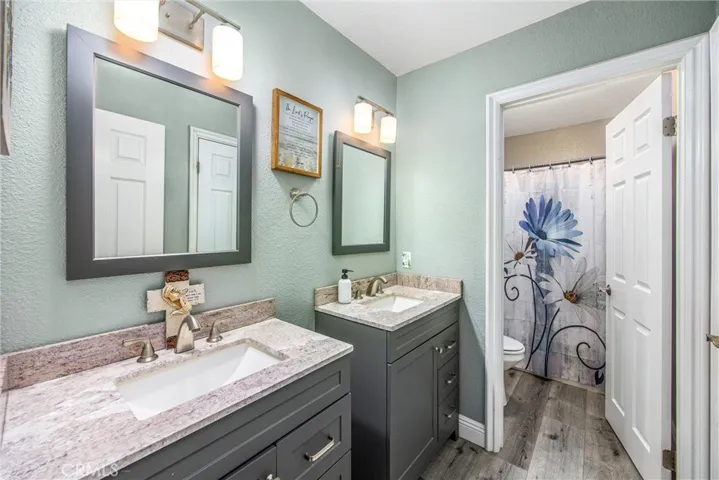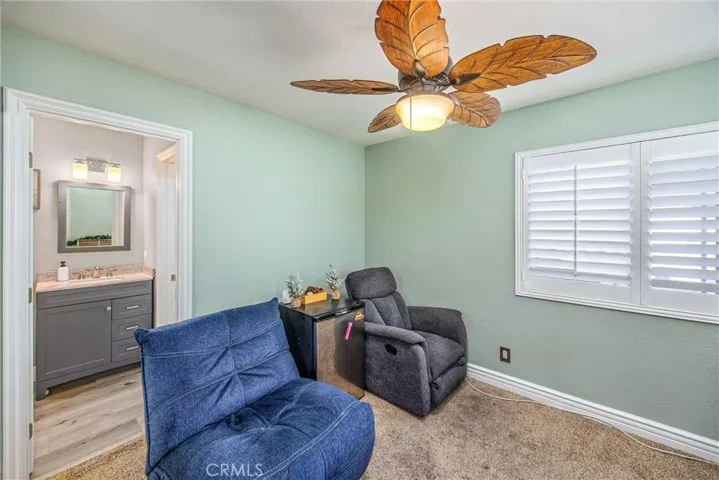 A convenient downstairs bedroom and bath make an ideal space for guests, an office, nanny, or in-law suite. Upstairs, you’ll find the remaining spacious bedrooms, including a Jack-and-Jill setup and a beautiful primary suite. The primary bedroom boasts a romantic balcony overlooking the backyard and stunning mountain views. The recently updated primary bath features a custom closet, walk-in shower, dual sinks, elegant mirrors, and a stylish vanity.