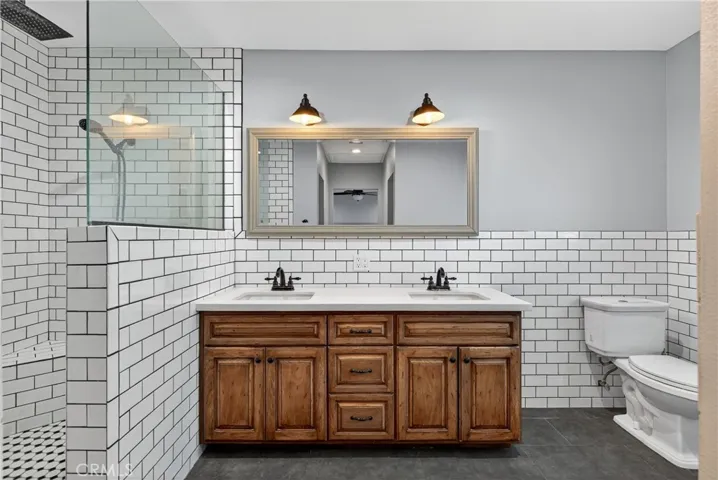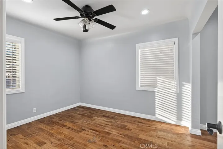 Two front bedrooms share a stylishly remodeled bath featuring a subway-tiled walk-in shower. One bedroom includes a cozy nook currently used as a home office—perfect for remote work or easily convertible into a walk-in closet.